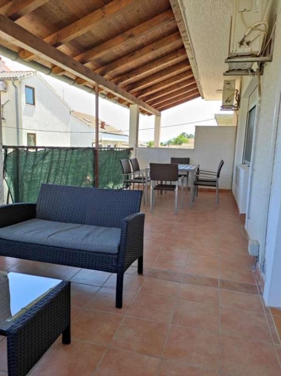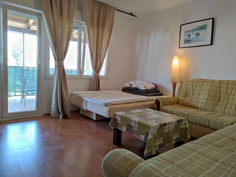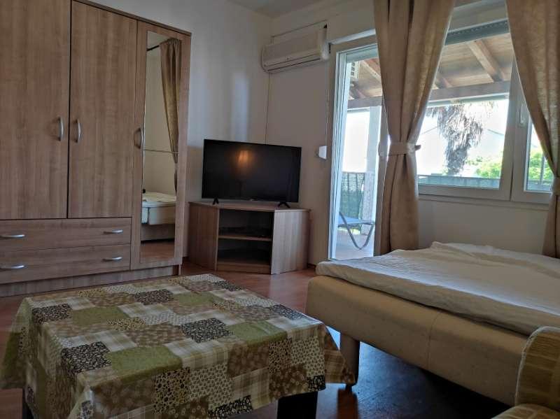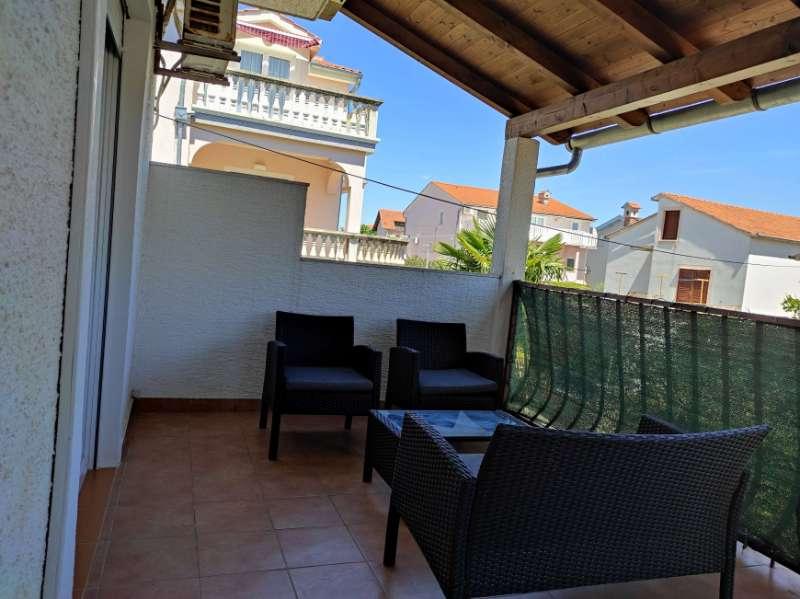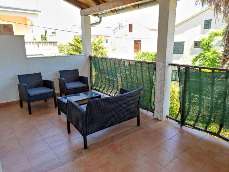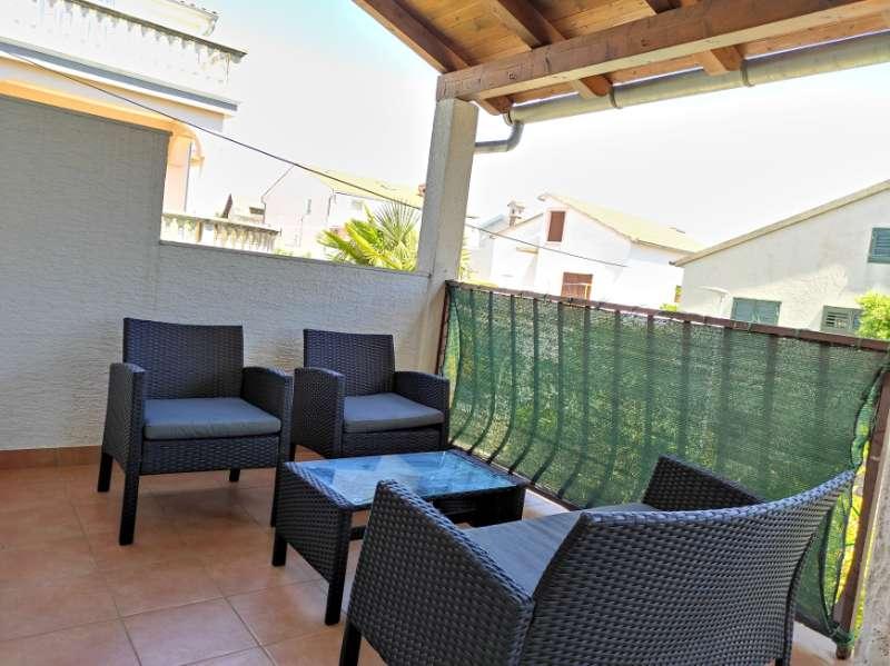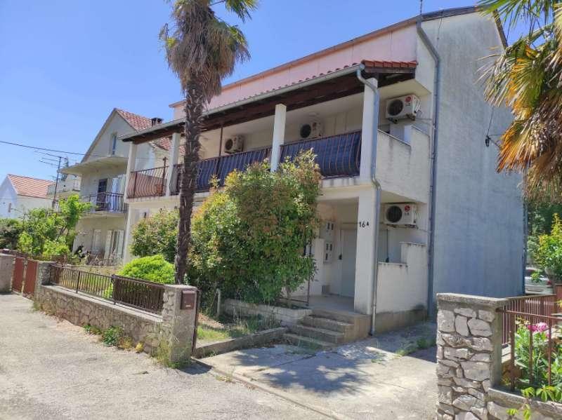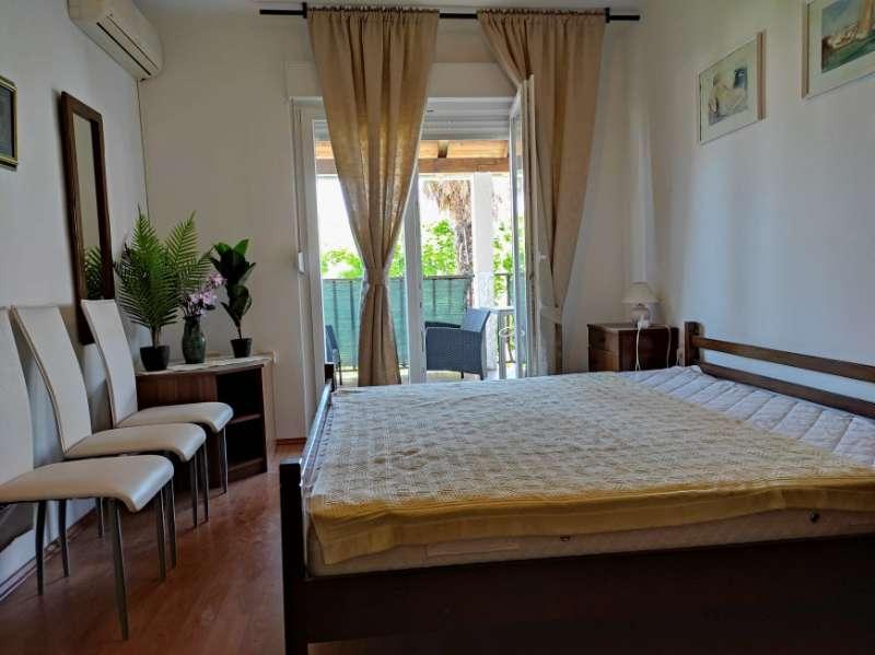 The apartment is in a quiet street with a covered terrace, equipped with 2 separate bathrooms, 2 showers and 2 toilets, kitchen, air conditioning, TV, wi-fi, washing machine and lounge on the terrace. In the yard there is a parking space and a barbecue. The apartment is close to Olympia Sky Hotel, shops, beaches and bakeries. The address is 16A from Split