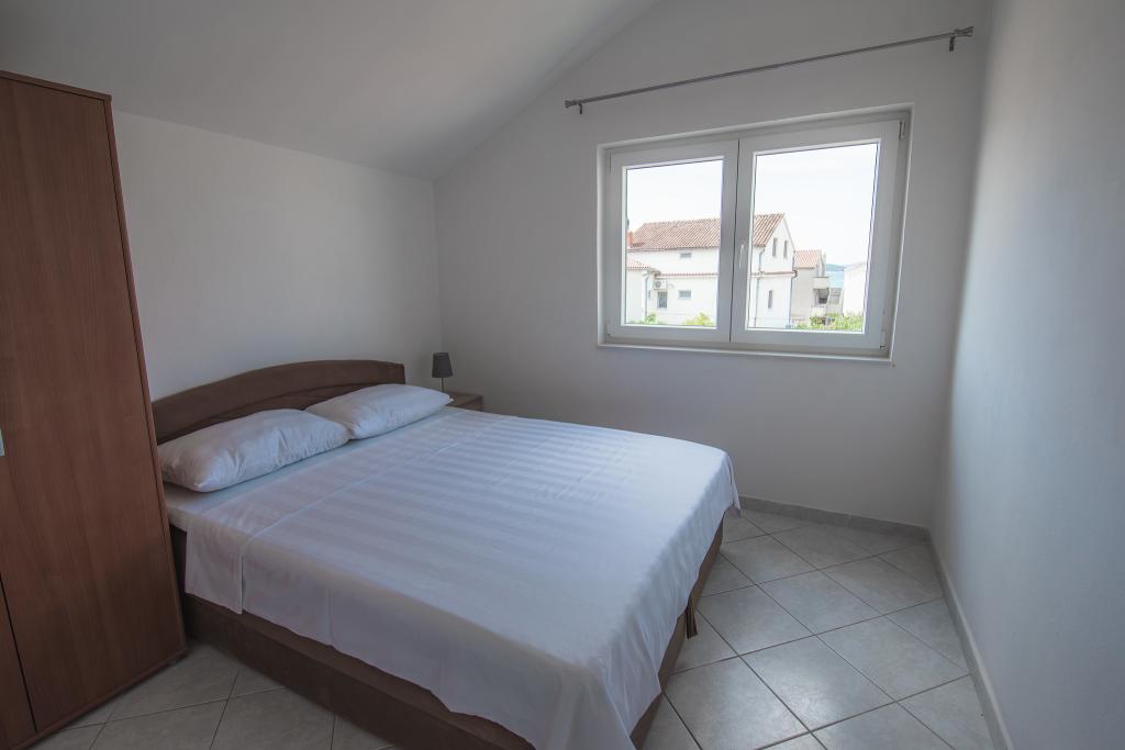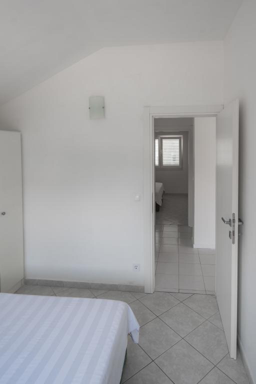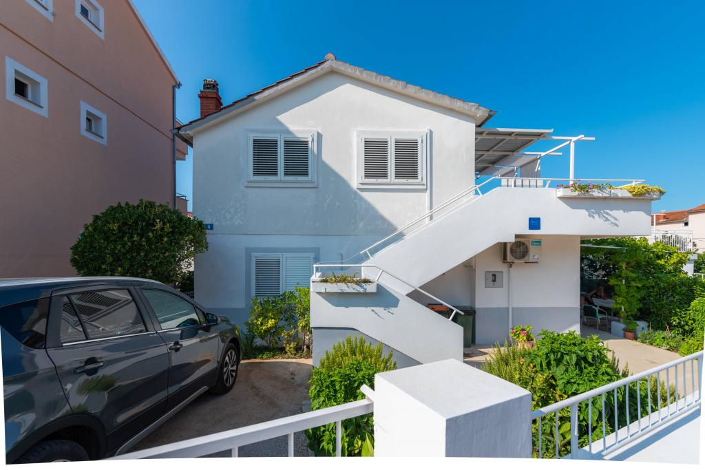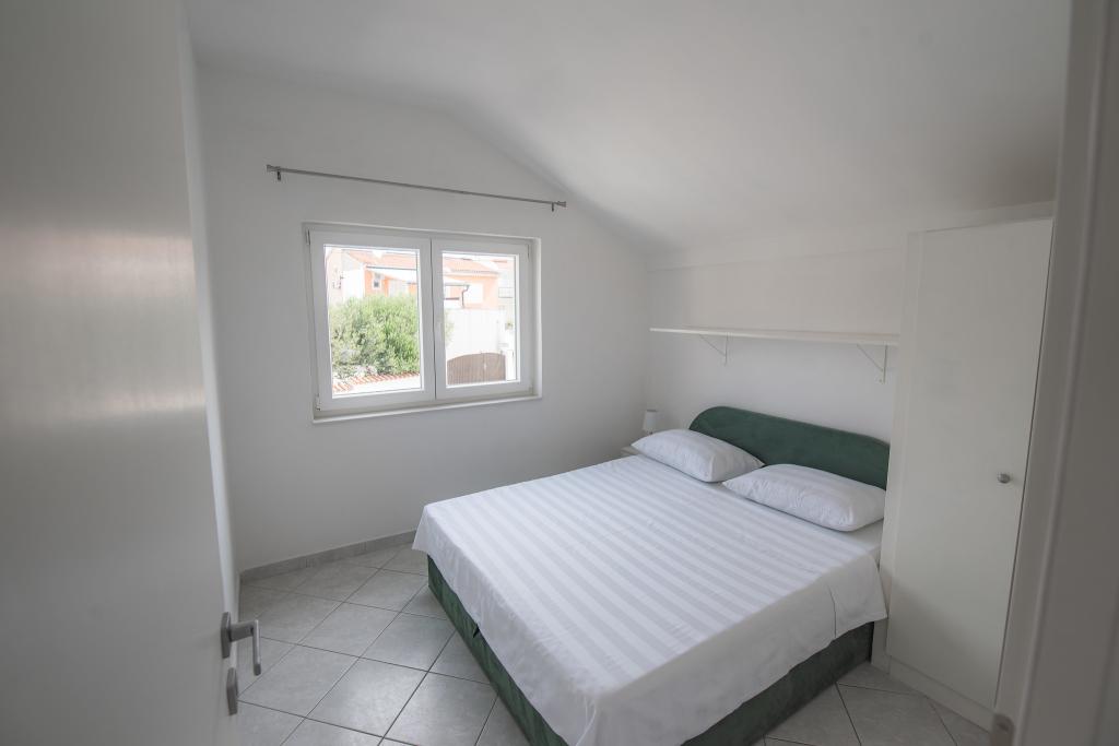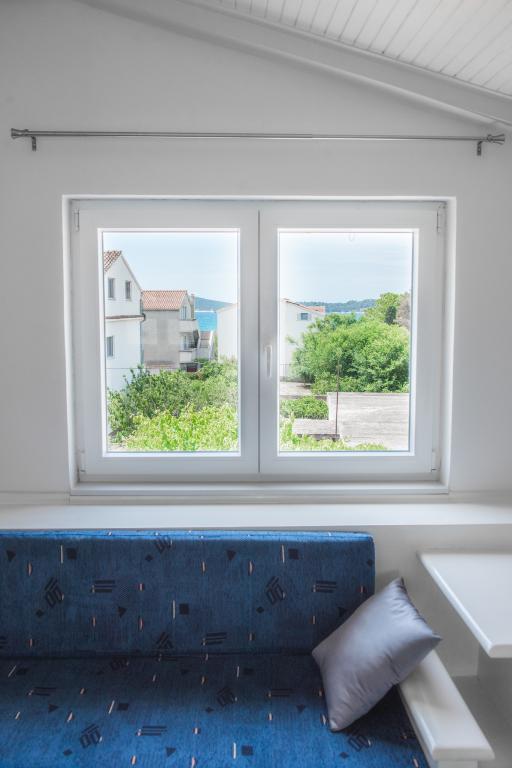 The apartment is located in a quiet part of Vodice, in the immediate vicinity of Blue Beach (sandy beach, 2 minutes' walk) and the town center (5 minutes' walk). The apartment is air-conditioned and has two bedrooms, a spacious living room, kitchen, dining room, bathroom, terrace, sea view. The apartment is equipped with LED TV, SAT TV, wifi, washing machine, mosquito nets on the windows, microwave oven, kettle, extra bed in the living room. Parking is provided in the yard of the building. The entrance to the apartment is separate. Pets are not allowed.