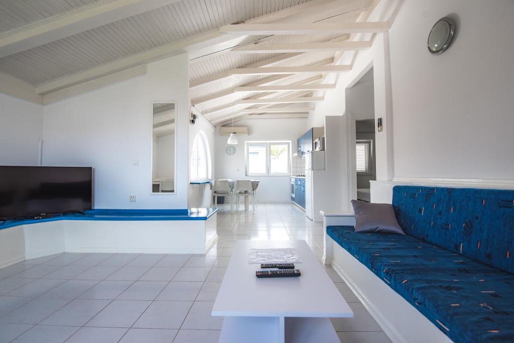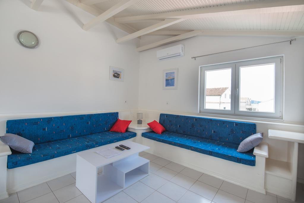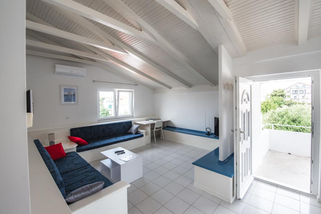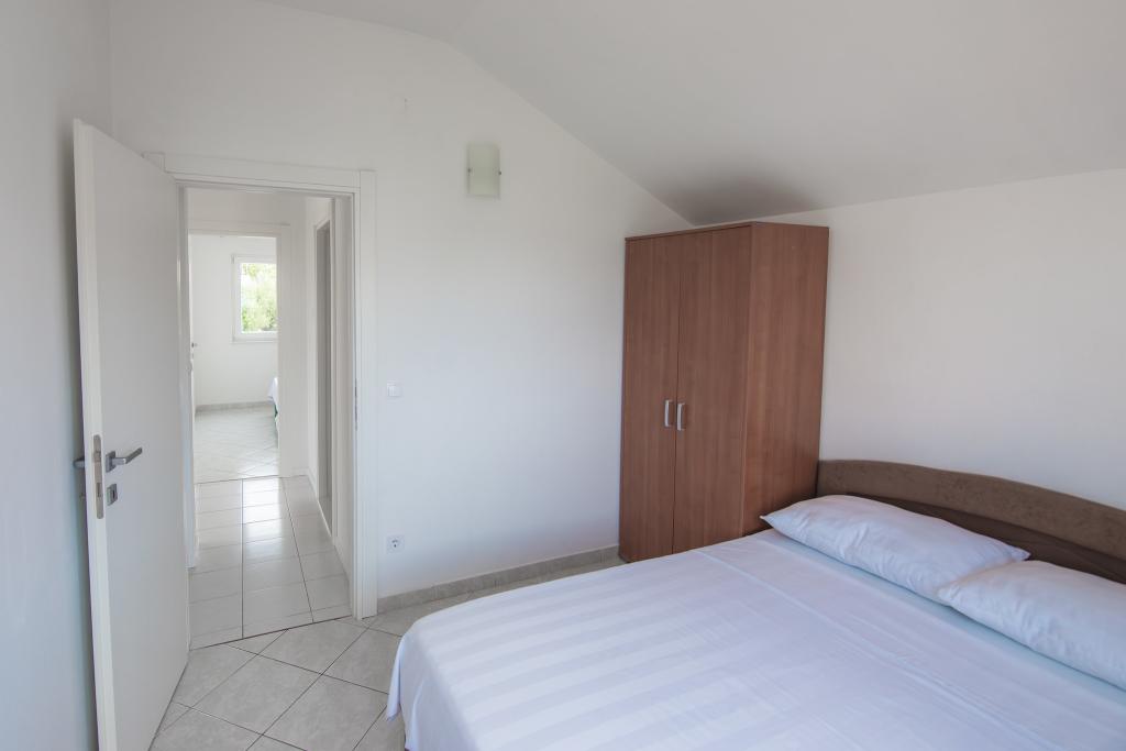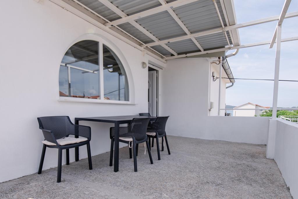 The apartment is located in a quiet part of Vodice, in the immediate vicinity of Blue Beach (sandy beach, 2 minutes' walk) and the town center (5 minutes' walk). The apartment is air-conditioned and has two bedrooms, a spacious living room, kitchen, dining room, bathroom, terrace, sea view. The apartment is equipped with LED TV, SAT TV, wifi, washing machine, mosquito nets on the windows, microwave oven, kettle, extra bed in the living room. Parking is provided in the yard of the building. The entrance to the apartment is separate. Pets are not allowed.