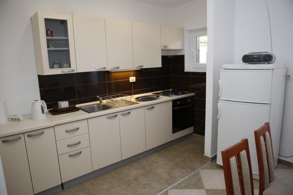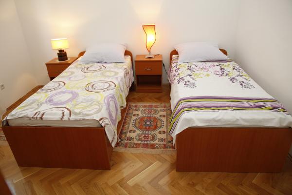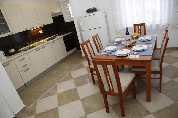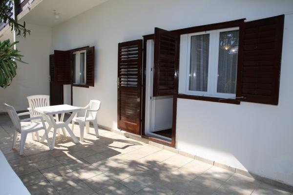 The apartment is located in the most peaceful part of town. It is 5 minutes walk to the beach and 10 minutes walk to the center of town. The apartment is really spacious and excellent layout of the rooms. It consists of a bedroom with a double bed, a room with two separate beds, a kitchen with a dining area, a living room with a sofa bed, a bathroom, a large terrace and a garden facing the south. The apartment is very pleasant, recently renovated and nicely decorated.