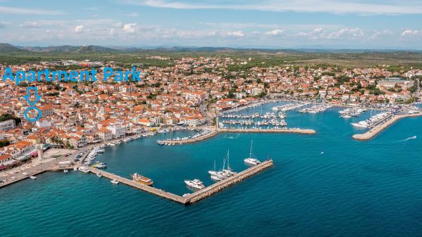 Apartment for rent - holiday house (150 m2) in the center of the town, 200 m from the sea. The apartment occupies the whole house, situated in a quiet location in the center of the town, close to the oldest park in which the apartment is named. Central Park is now no different from other parks, but its story reaches far into the past of the town, before Vodice grown and one of the most popular tourist destinations for a vacation in Dalmatia. The apartment is located at only 3 minutes walk from the sea (100 m), and nearby there is a shop, a bakery and a restaurant, you maximum relaxation and enjoyment of your vacation. The apartment is 150m2, fully equipped and consists of: - Ground floor: living room, dining room, kitchen, bathroom, storage room for things - FIRST FLOOR: - Room A: 2 beds (14 m2) - Room B: 2 single beds (14 m2) - Bathroom - SECOND FLOOR: - Room C: 4 beds (22 m2) - Terrace