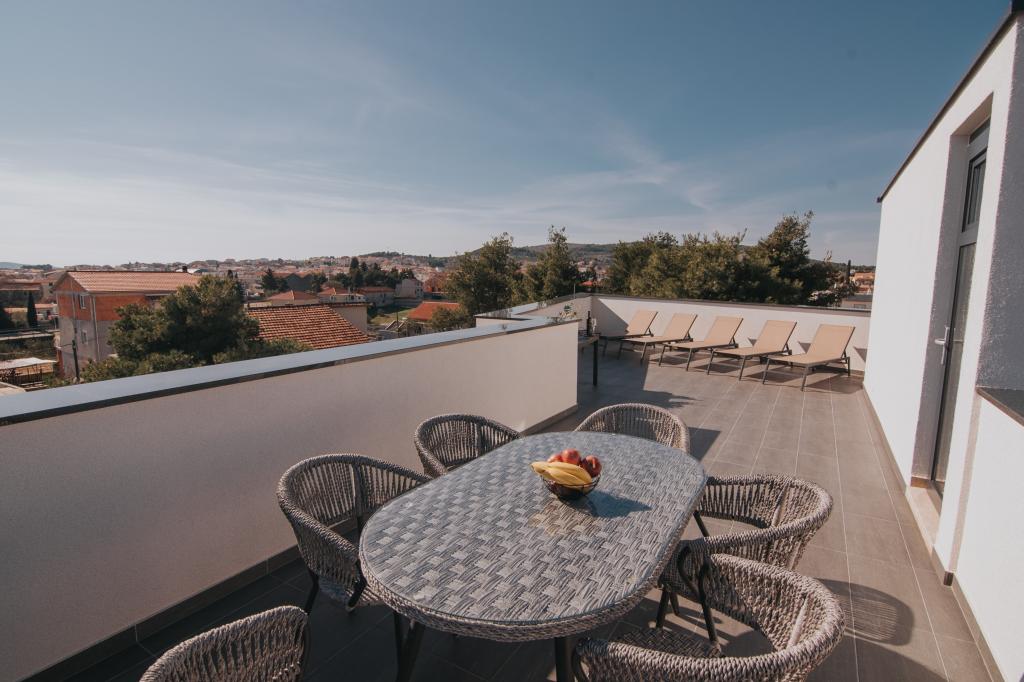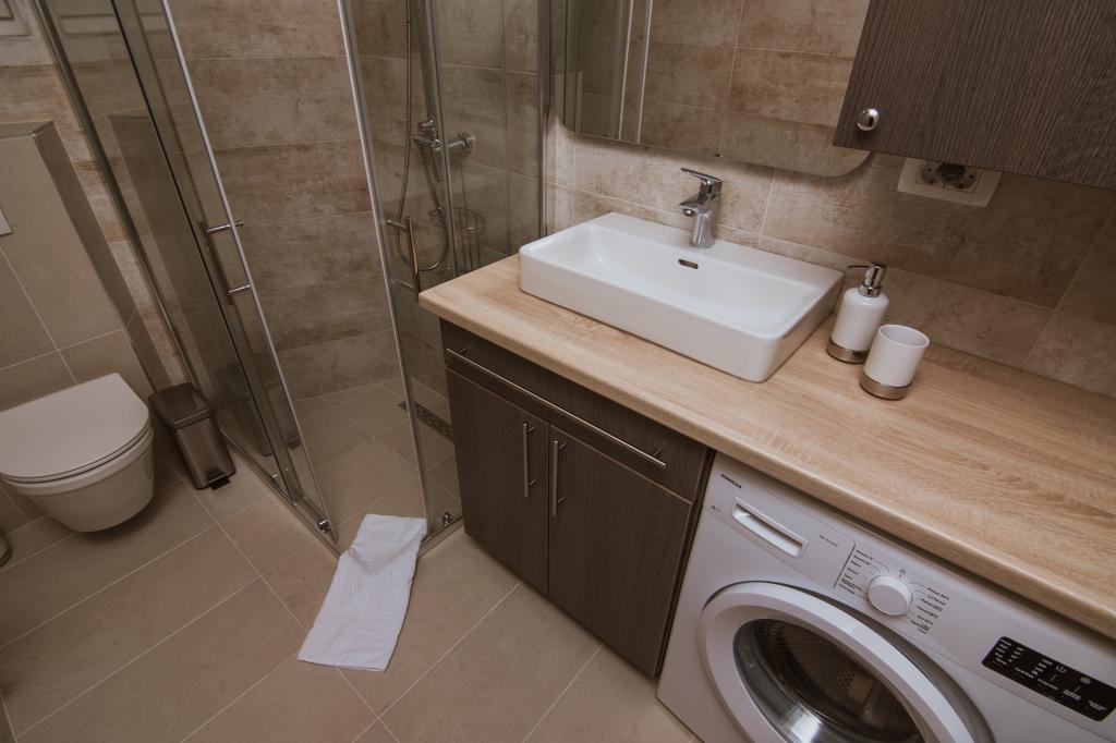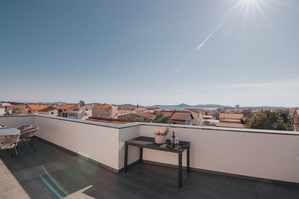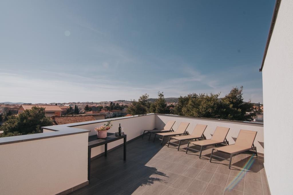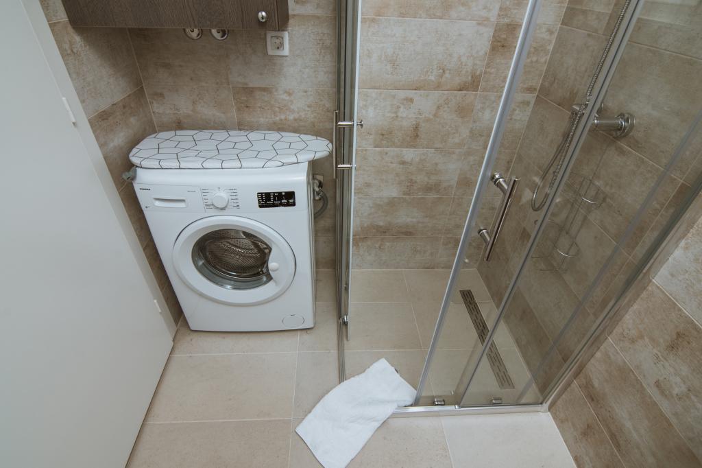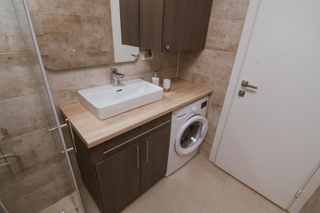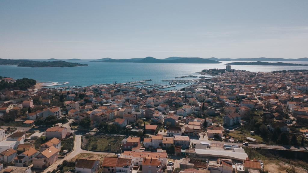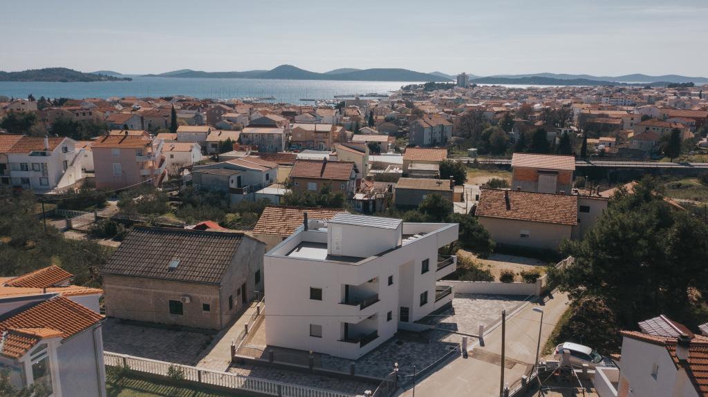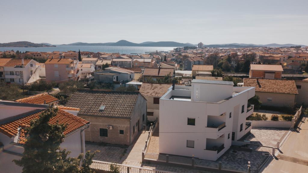 Apartment PiiP-ni-More in Vodice, capacity is 2 + 2, approx. 55 m2 located in a newly built building in a small quiet street. The apartment has a bathroom, spacious living room with dining area and fully equipped kitchen with various cooking utensils, including dishwasher, Washing machine, oven, induction hob, refrigerator, coffee maker, kettle, toaster ... The apartment has a beautiful intimate balcony partly with sea views and the possibility of using the roof terrace. There is also a spacious bedroom with a separate TV. The sea and the main city beach are about 600 meters away, and the city center is easily accessible by a walk of ten minutes. The market, restaurants, shops, bus station, are about fifteen minutes easy walk.