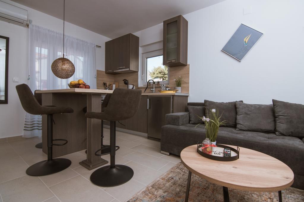 High standard of the facility. Everything new. Cleanliness at the highest level. The host's daily care for its maintenance. Kitchen supplies (new pots, frying pan, plates, dishwasher, oven, everything needed), bathroom (washing machine, dryer, iron in the bathroom). Comfortable beds. Efficient wifi with the possibility of turning on YouTube. Effective air conditioning, automatically controlled blinds. In this house I felt at home, having everything I need. Beautiful sea view from the terrace of the apartment. The host was supportive. We had a small fault in the apartment, he reacted immediately, he helped. The biggest advantage of this place is the people who run the facility. So the host and his wife. Their hospitality was amazing. I will never forget the delicious coffee for which we have been invited many times. Before my arrival, I had very good email contact with the owner. He accepted us (there were 2 small children with us) much earlier before 10 o'clock at my request. Chilled wine and water waited in the fridge upon arrival. Thank you again! It was the best vacation ever! If we come back to Croatia, we will 100% go to Piip-ni-More