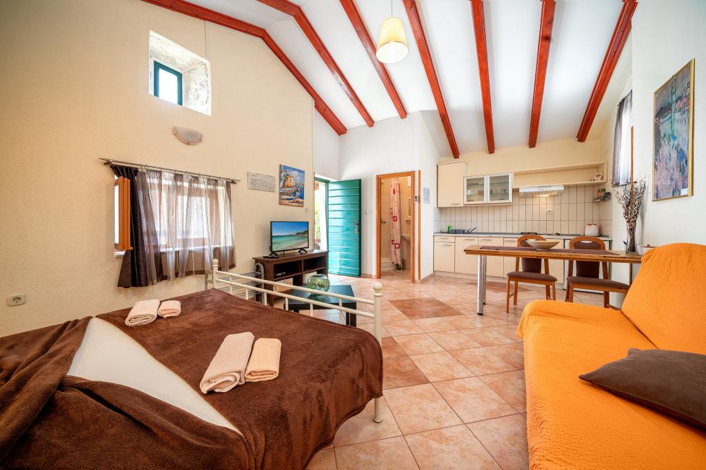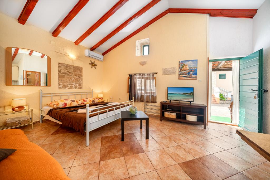 Apartments Janjac are located in the center of Vodice, only 200 meters from the coastal promenade. Various bars, restaurants and beaches are within walking distance. All studios and apartments include a kitchen with a dining area, a living room and a bathroom with a shower, and are equipped with air conditioning and wi-fi. Apartments Janjac offer a shared garden with barbecue equipment. The market is 200 meters away from the property. There is a parking space in the yard. The main bus station is 250 meters away. To Split Airport there are 70 km. This is a favorite part of Vodice's destination for our guests, based on unbiased reviews. Enjoy your vacation in our apartment!