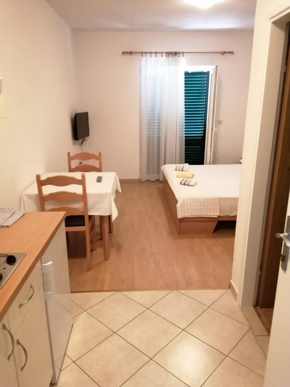 The studio welcomed us clean and tidy, very nicely maintained. We had everything we needed. The surroundings are peaceful and quiet, the beach is not far away, as are other facilities such as restaurants, cafes, and bakeries. Mrs. Marija is very kind and approachable, she is happy to answer every question and made sure that our stay was as good as possible. Any recommendation!