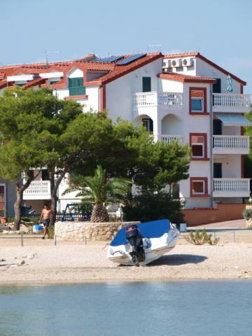 4x Type A - Studio Apartment - Suitable for 2 +1 persons with 1x couch and 1x double bed. 4 x Type B - Studio Apartment - suitable for 2 people with 1x double bed. 4x Type C - Apartment (separate bedroom) suitable for 2 +2 persons with 1x double bed and 2x couch. 2x Type C New- Apartment (separate bedroom) suitable for 2+2 persons with 1x double bed and 1x couch. Apartment Kuća is located on the Adriatic coast approx. 8 km north of Šibenik, about 4 km from the tourist center of Vodice in Srima. The location is quiet and absolutely close to the sea (approx. 30 m), where the sea is shallow, partly gray sand with pebbles and a pebble beach. There is a large parking lot and barbecue in the yard of the house. Next to the house is a small cafe, about 800 m is a small shop and restaurants. A small train runs to the city center, which is 4 km away. We offer our guests comfortable and well-equipped apartments in one of our 14 apartments as a practical and cost-effective accommodation alternative. Here you can spend a pleasant vacation with children and friends.