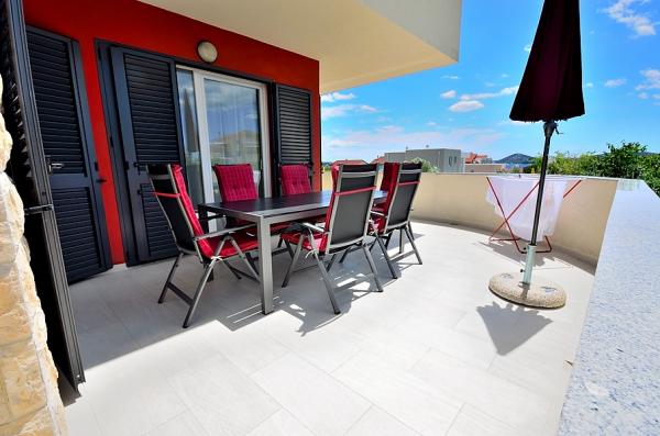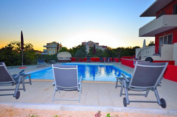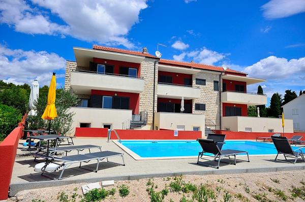 Vodice- newly built house with a pool house 6 2, 400 m from the beach, 500 m to the Blue Beach (beach with blue flag) The house consists of ground floor where the toilets, kitchen and living room with a large terrace on the first floor are three bedrooms, bathroom and terrace. On the use of the pool, 2-3 parking spaces, barbecue, wi-fi, TV, satellite,