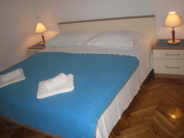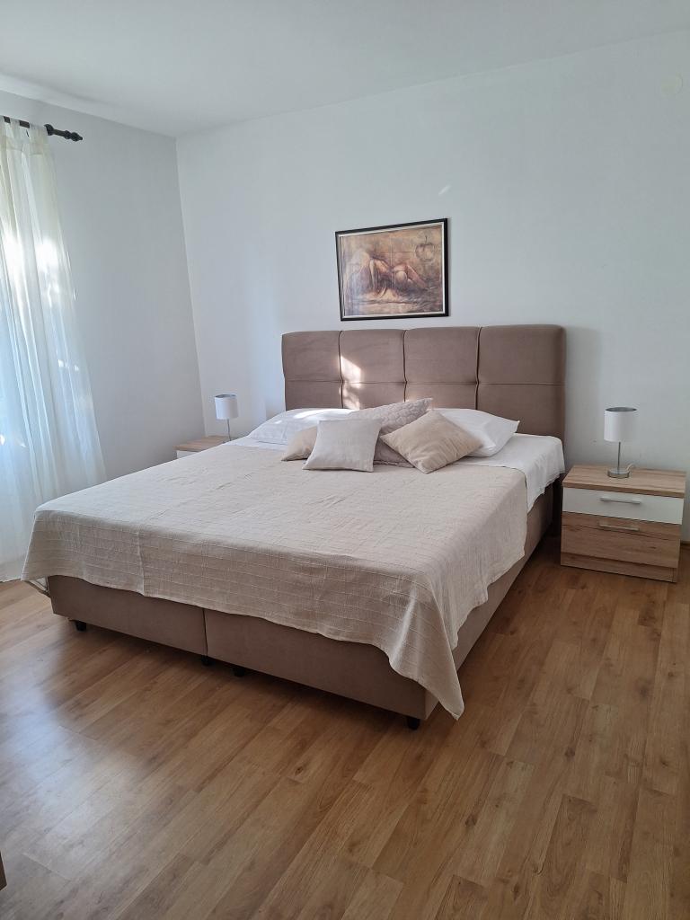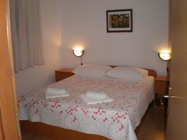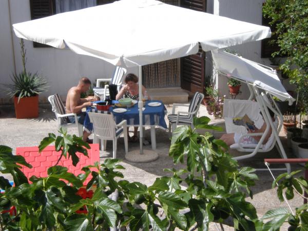 Apartments Bogdan are situated in a quiet part of the town in an area of 1100 m2. Facilities are located less than 10 minutes to the city center and 15 minutes walk to the sea. Large garden surrounded by lawns, flowers and greenery provides guests with a comfortable and peaceful holiday. All three apartments are located on the ground floor. Apartment A1 capacity 2 1 person, apartment A2 4 1 person and A-3 capacity 6 2 persons. Equipment: outdoor seating furniture, swings, parking, for more of automobiles, apartment A1 has its own garage, which is located next to the apartment, barbecue. There is also table tennis, playground for children. All apartments are air-conditioned and equipped with; satellite TV, wi-fi, washing machines, refrigerator with freezer, small appliances; coffee maker, kettle, toaster. and everything else that is necessary for the atmosphere of domesticity. The friendly hosts are available to guests (years of experience) for any further information needed or assistance of any kind.