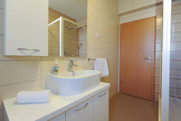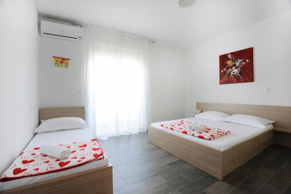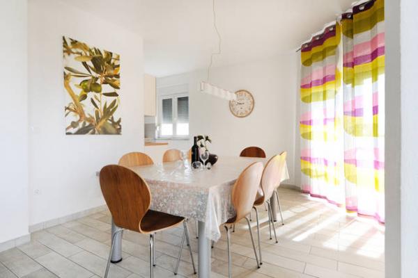 If you are looking for high quality accommodation in one of the most popular destinations on the Adriatic Bosotina select apartment in Vodice. The apartment is located in a newly constructed building on the first floor and is equipped with modern furniture and amenities such as dishwashers, air conditioners in every room, satellite TV and wireless internet, and from the beach and the city center is 5 - 7 minute walk. The apartment is 130 m2 and consists of three bedrooms (2x2 and 1x3), three balconies, two bathrooms, kitchen, dining room and living room. It is fully air conditioned and can accommodate a maximum of 9 persons.