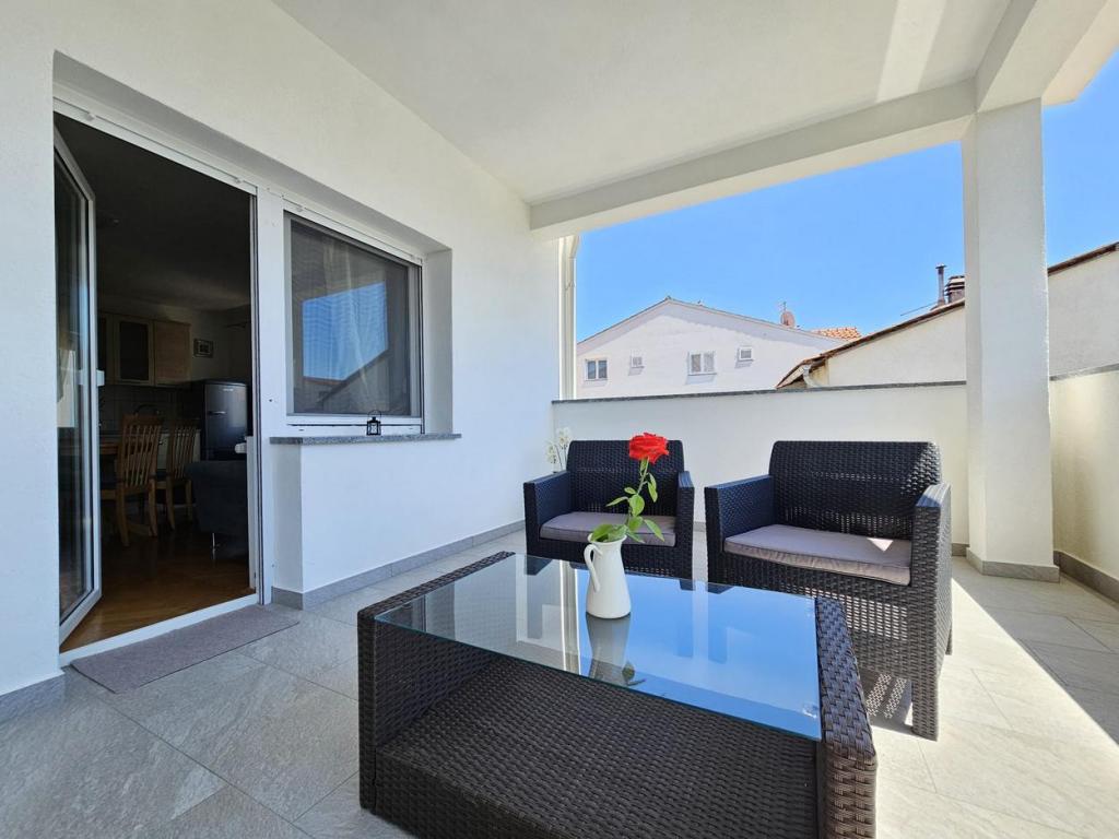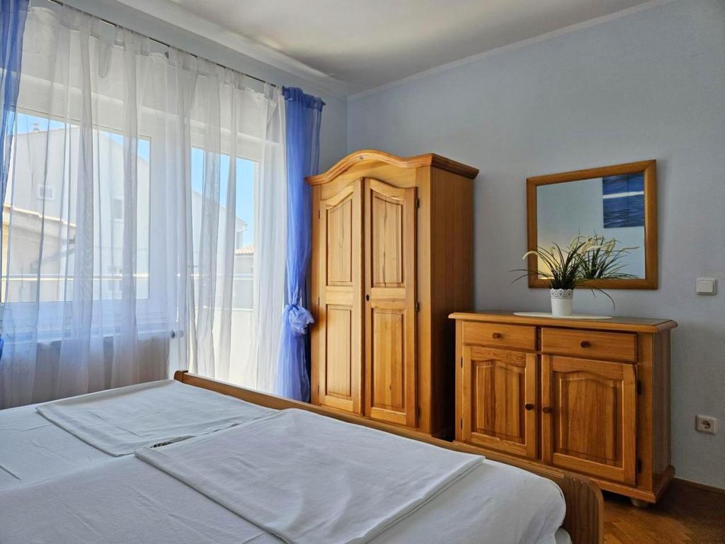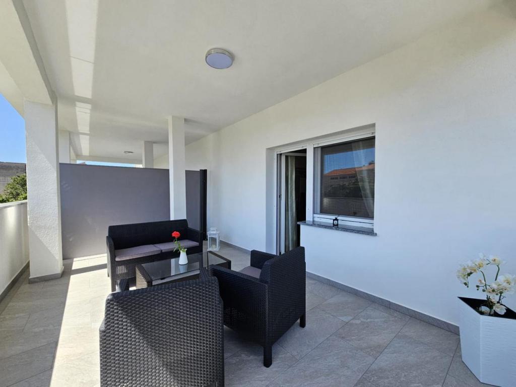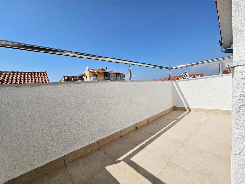 NEW!!! Welcome our dear guests to the newly renovated spacious apartments of 70 m2 in a family house: a large living room connected to the kitchen and dining room and exit to a large terrace of 16 m2 with a view of the sea; bedroom with double bed and additional balcony, second bedroom with 2 separate beds, large bathroom and hallway. On the same floor, 2 exactly the same apartments with newly built large terraces! The facility is located 3 minutes from the beach and the first store. Comfortable and spacious! Clean and tidy! There is a safe and covered parking space within the building. WiFi, air conditioning, satellite TV, barbecue, outdoor shower, secure parking and tourist tax included in the price! For any additional needs, the friendly hosts are at your disposal at any time!