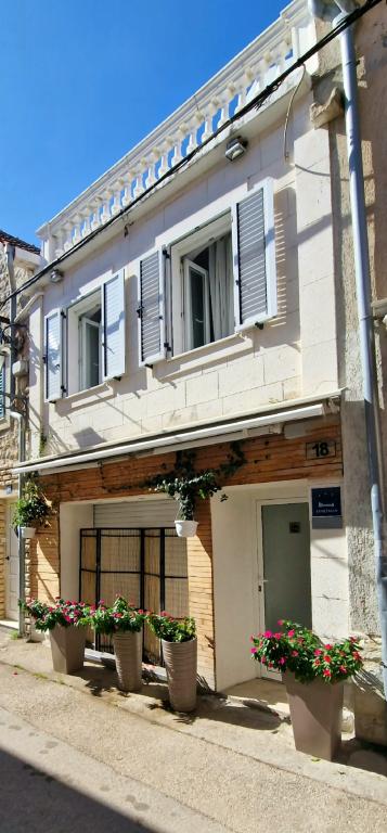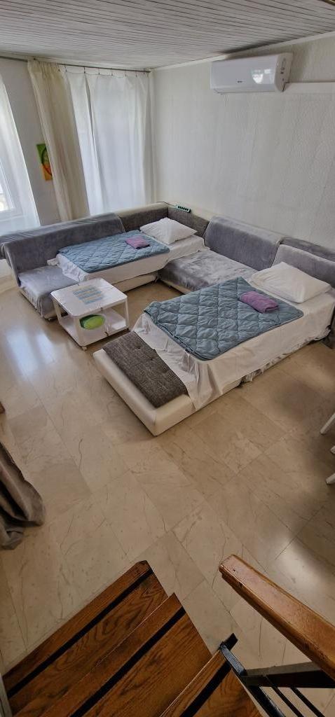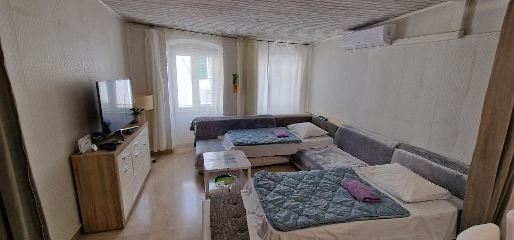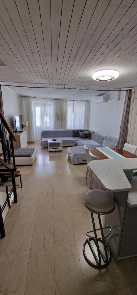 Apartments in the center 40 m from the waterfront and the ferry port. It is right next to the beach. The house is on two floors, 100m2. - Studio apartment 45m2 for 2 people, living room, kitchen, bathroom wc - Apartment 75m2, 1 double room with terrace, living room for 2 people, bathroom wc, kitchen. - Apartment 100m2, 1 double room with terrace, 2 single rooms, living room for 2 people, 2 couches with mattress, kitchen, bathroom wc The whole house is air-conditioned and has flat-screen internet with a large LCD TV. Parking is nearby.