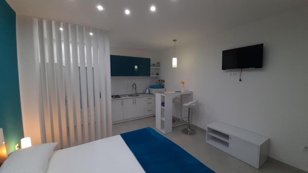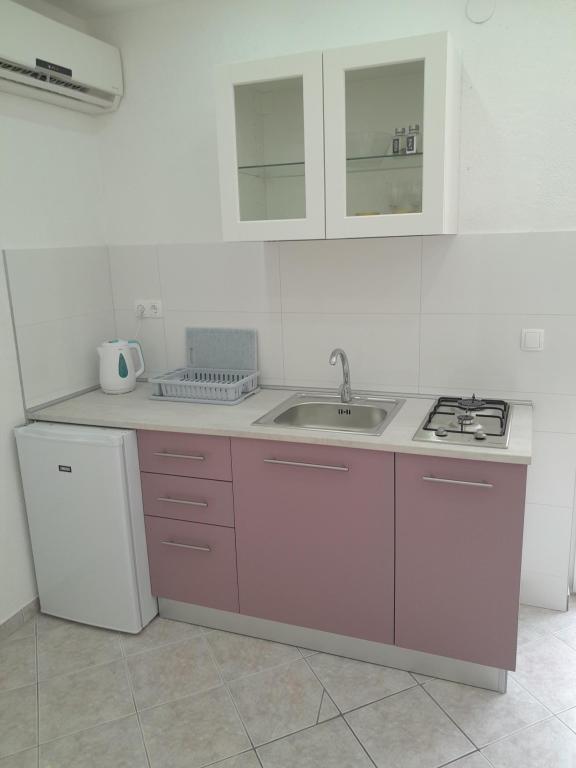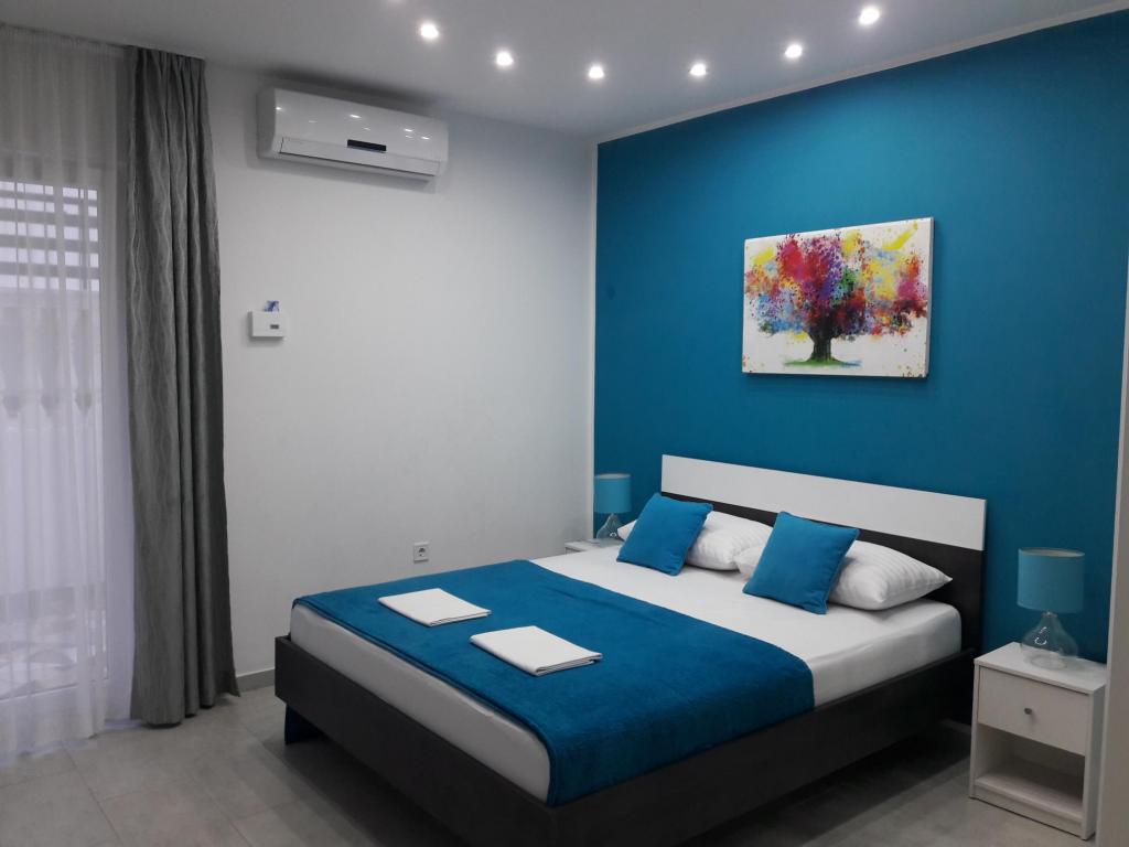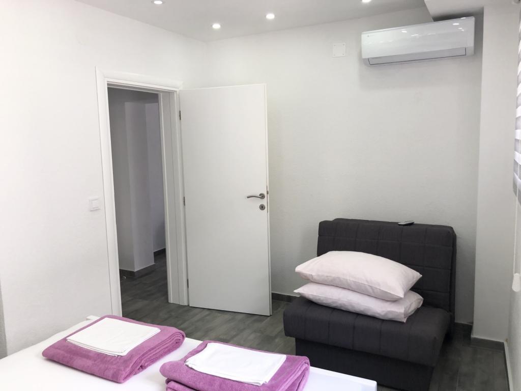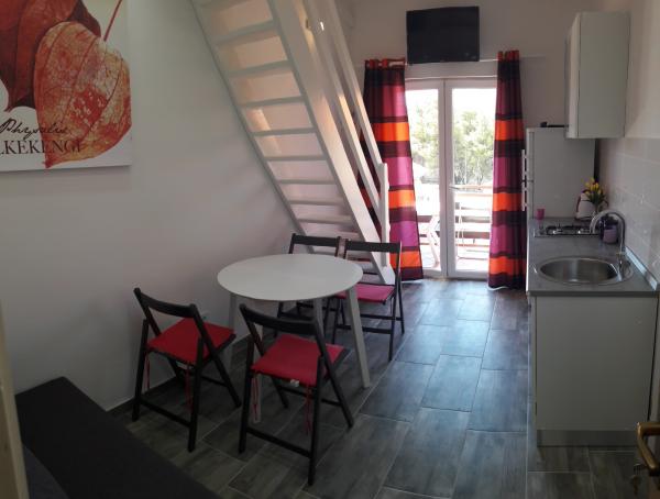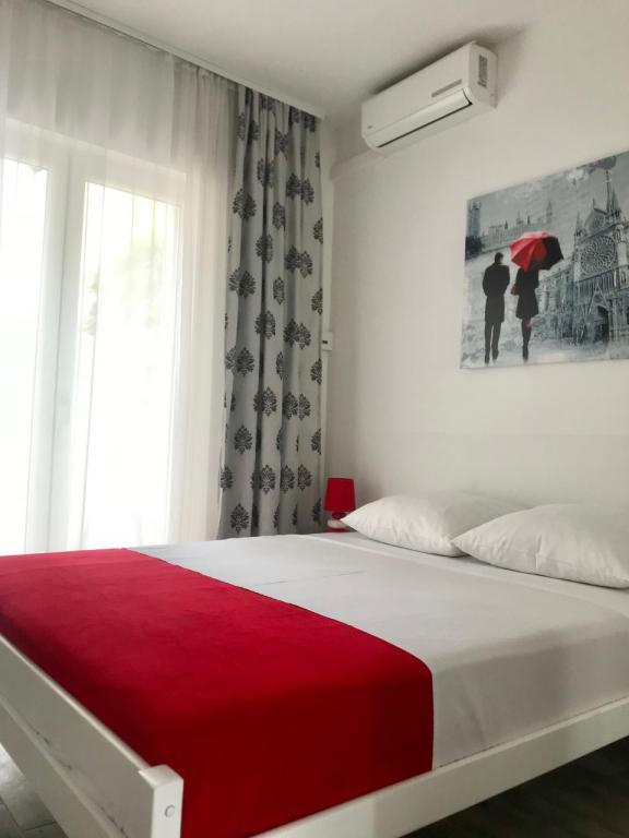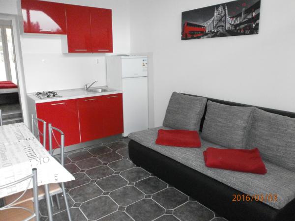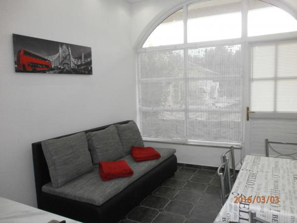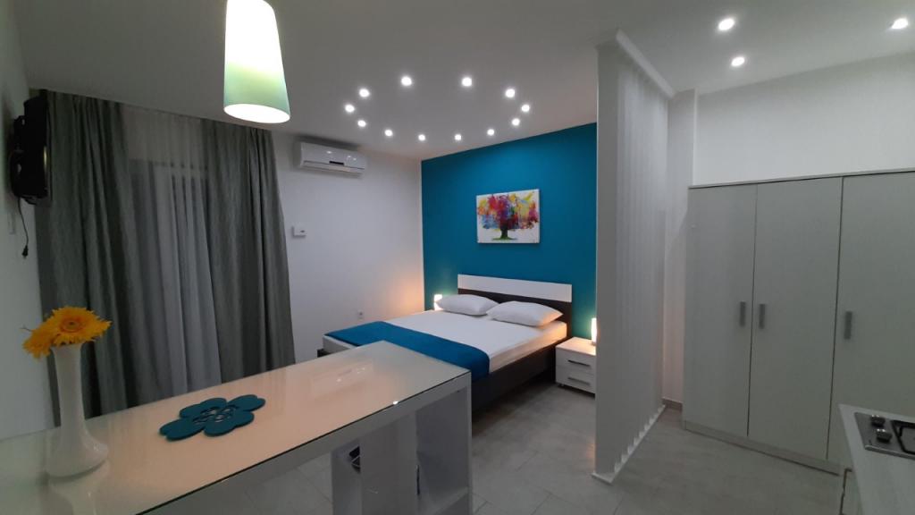 Renovated and nicely decorated house with yard and children's corner. There is a bakery in the house. Apartments have air conditioning, internet and parking. The beach is just a few steps away. Close to the Olympia and Imperijal hotels.