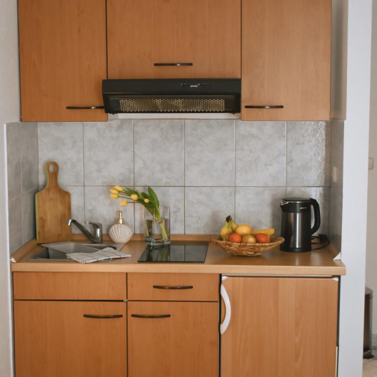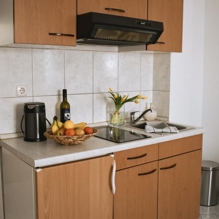 Fully equipped apartments in a quiet part of Vodice. Close proximity to the center and the beach. We are 5 minutes away from the center where there are shops, cafes, restaurants and markets. We are a 7 minute walk from the beach. Our facility is adorned with a beautiful garden, equipped for barbecue, sunbathing, relaxing or dining. We offer free parking.