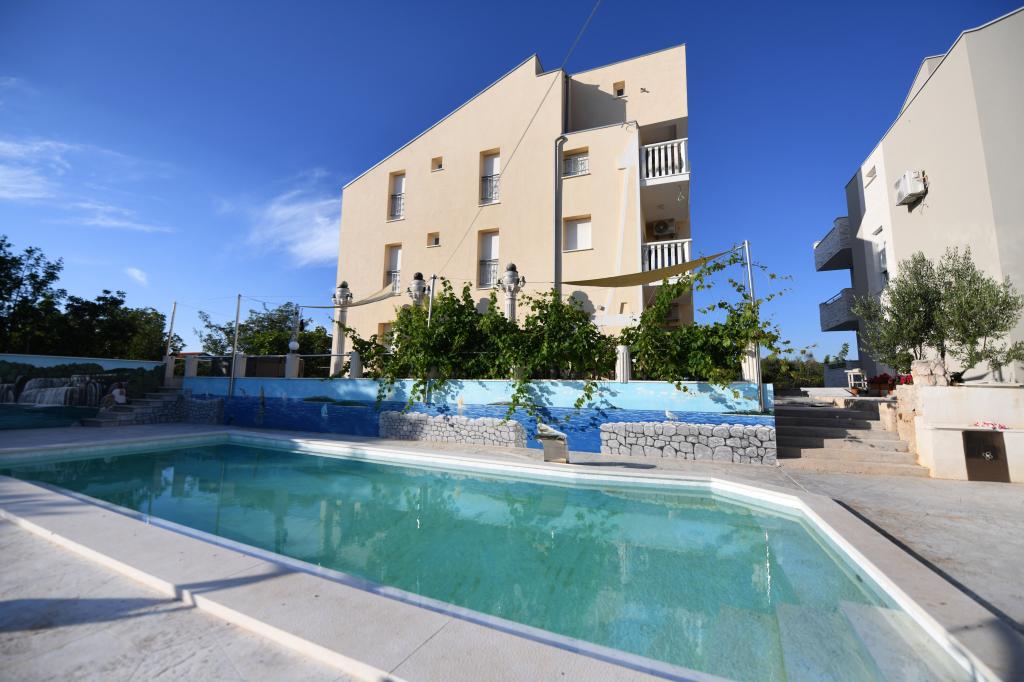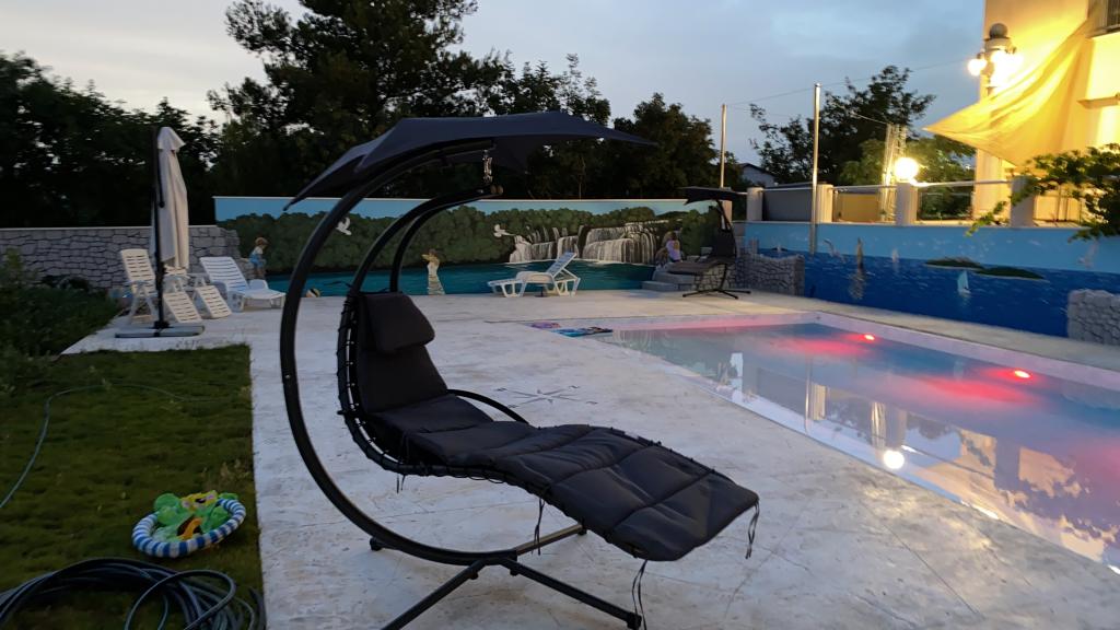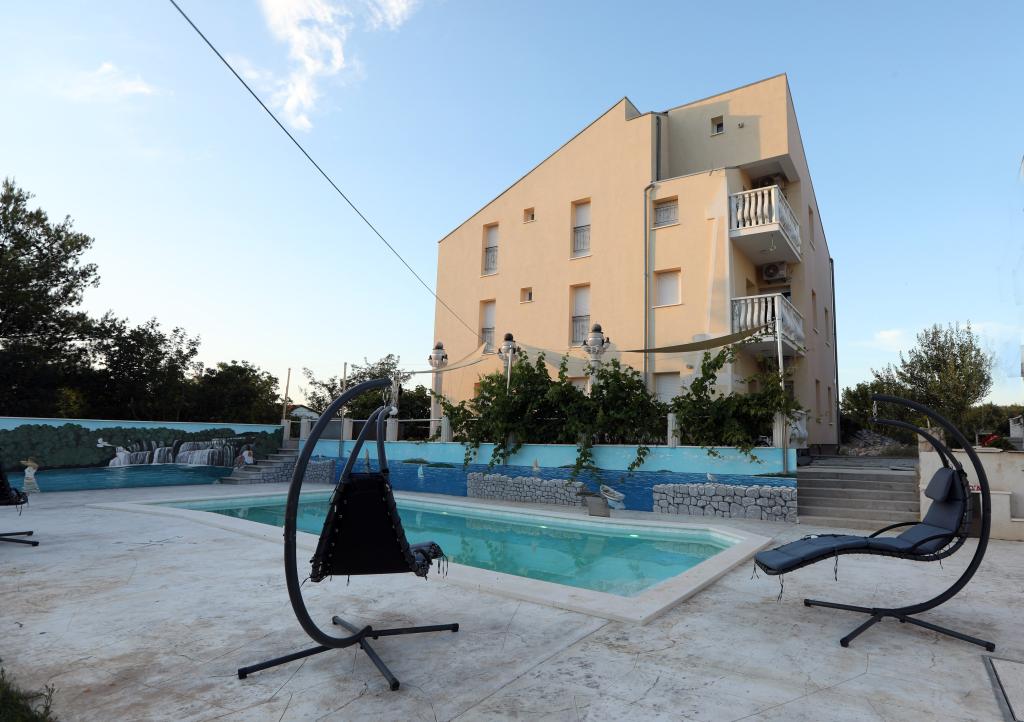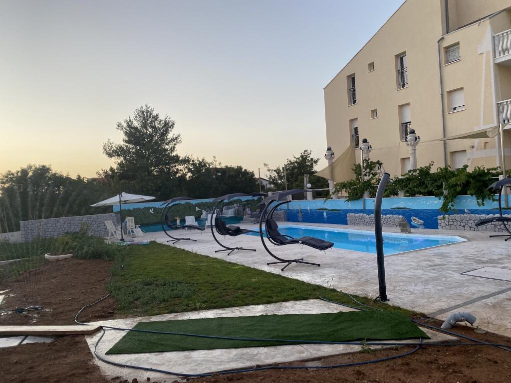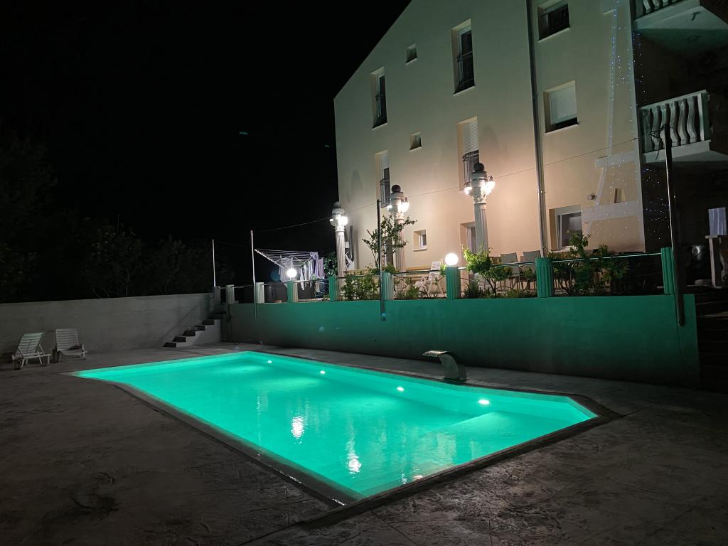 Expansion of the recreation area to 1260 m2 for various sports activities. Along with the new content, Apartments IVAN V also get the word RELAX. The new swimming pool is in operation with heated salt water as well as a jacuzzi for all guests. Vaccinated against Covid-19. We send confirmations of reservation payment. All old guests have a 10% discount on the standard installment for that period as well as guests from Zenica; the discount cannot be cumulated with other discounts. Each apartment has the right to use the swimming pool and jacuzzi in the courtyard of the facility. The capacity of the facility is 18 beds. Possibility of organizing transportation to Split airport or Zadar airport (50 km) with a surcharge.