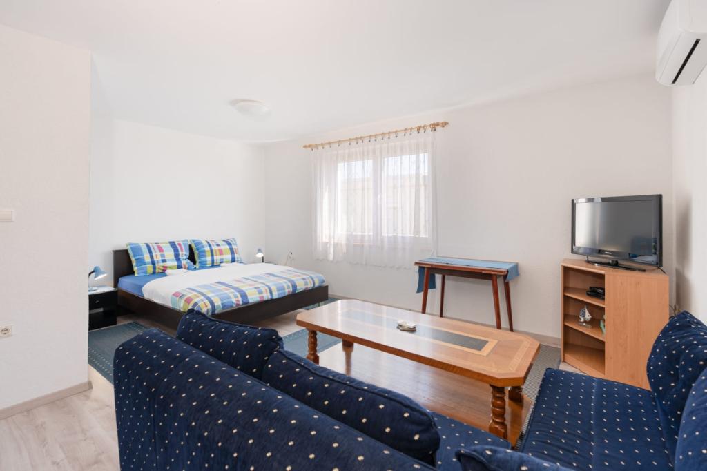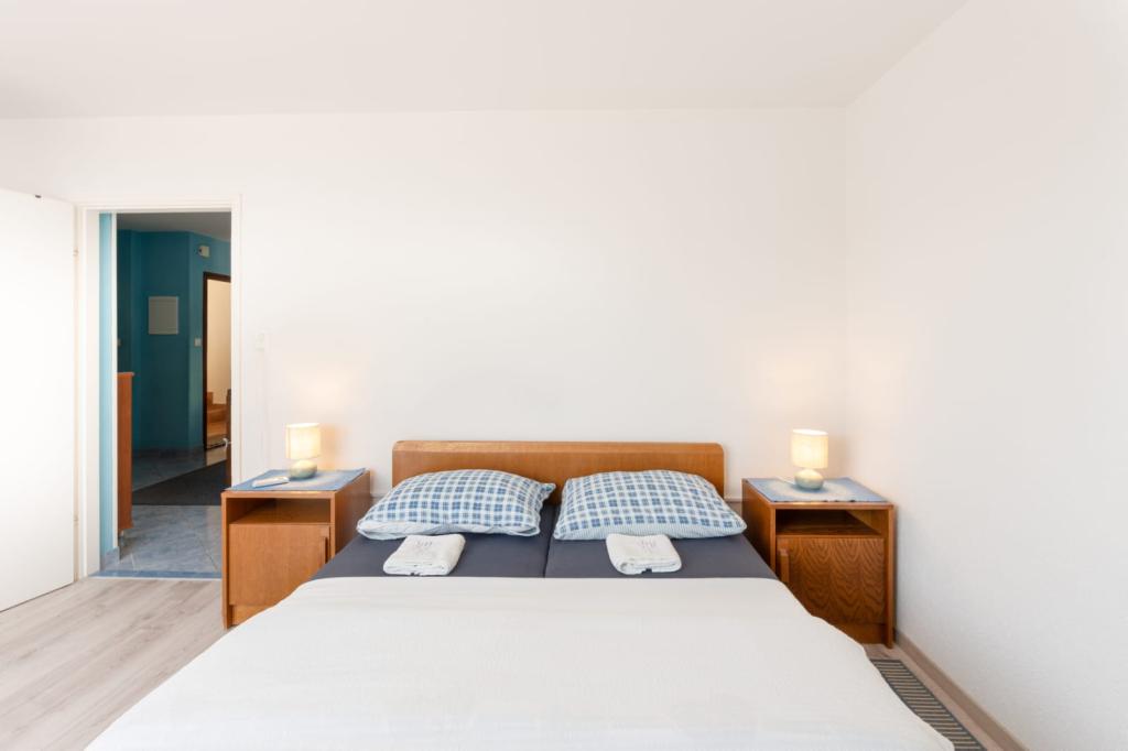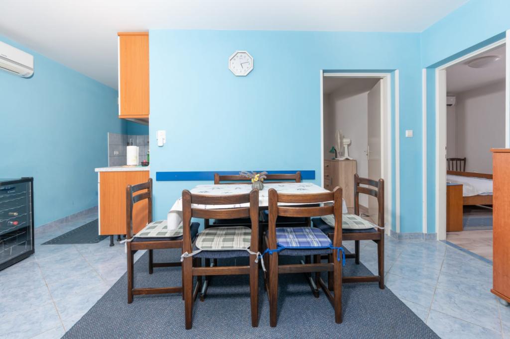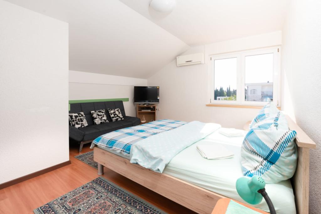 A very large and comfortable apartment A6, with three air-conditioning, well-working Wi-Fi and a large terrace. A spacious and covered car park. Quiet and peaceful place, you can not hear the noises from the city center, which is about 10 minutes walk. We recommend the Bristak beach, new and definitely less crowded, also about 10 minutes walk. Close to the shop with basic groceries, chemicals and more. Very hospitable, nice and friendly hosts, willing to help and talk. Mato and Agnieszka, thank you for the nice time!