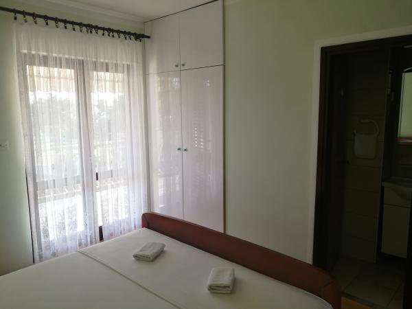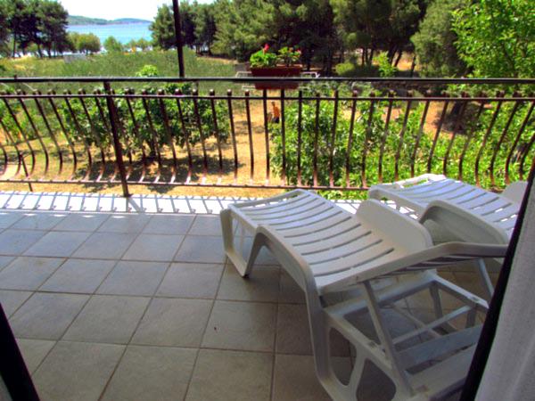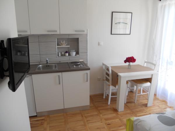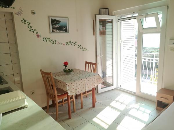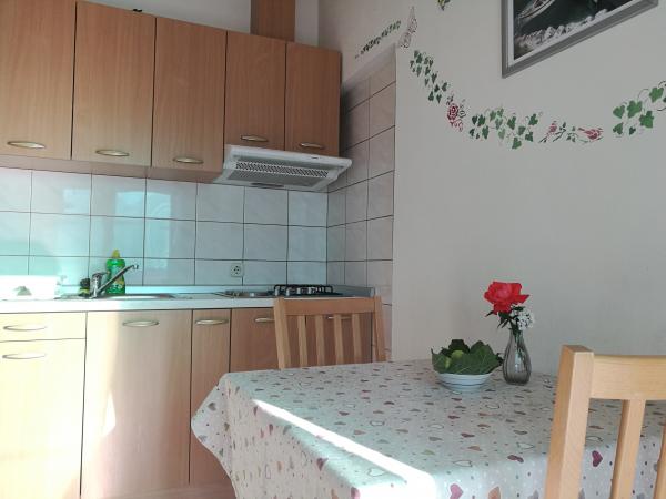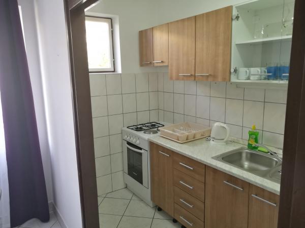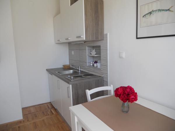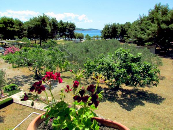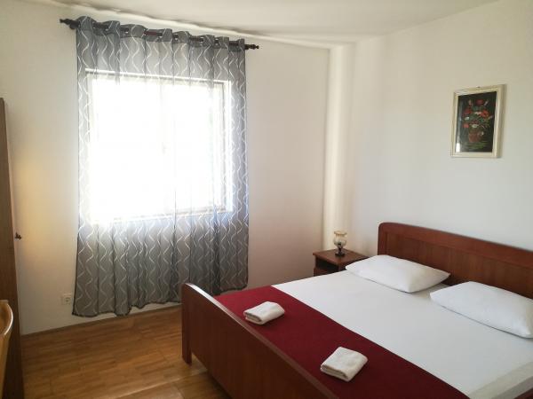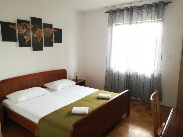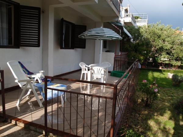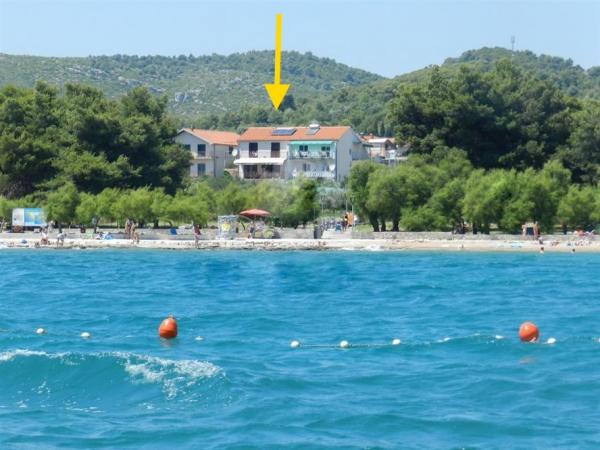 The house is located in a quiet neighborhood first row to the sea and consists of 4 apartments. It has a beautiful sea view, and the beach with scrubs and concrete sections is ideal for children. The beach has a lot of amenities so you can enjoy jet-ski, pedal boats, water park, table tennis, trampoline and many other activities. When you want a break from all activities, sunbathing and swimming, you can go for a holiday in nearby cafés and restaurants where you can enjoy refreshing drinks and Dalmatian specialties.