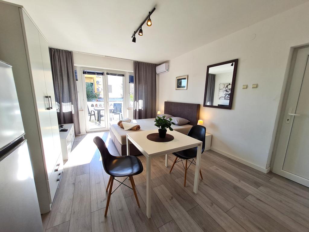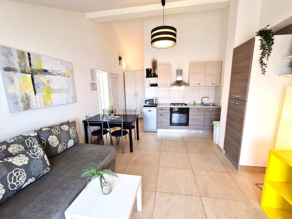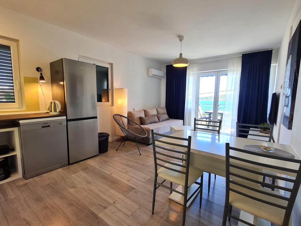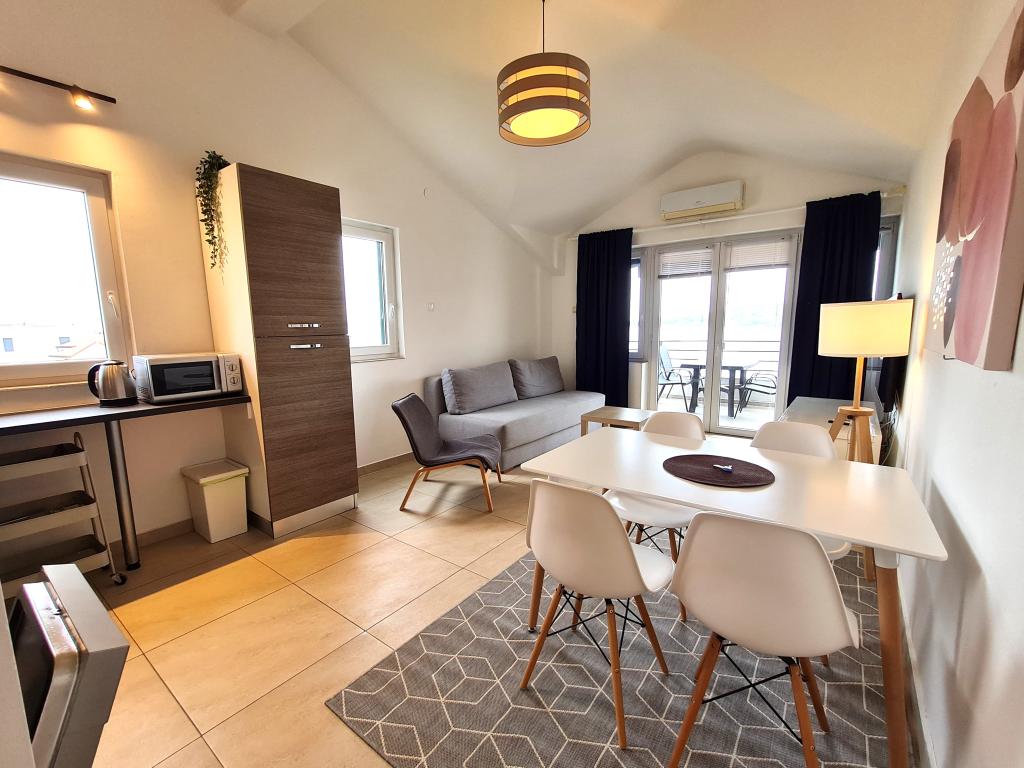 Apartments LAGOM in Vodice are located 20 meters from the sea near all the necessary facilities and again in an ideal holiday location. We have 6 apartments of different capacities and are provided with one parking place for each apartment. The center of Vodice itself, shops, marinas, restaurants, etc. are within a 15-minute walk of the apartment building. Barbecue in front of the house is available to all guests, and the climate and sojourn tax is not charged extra.