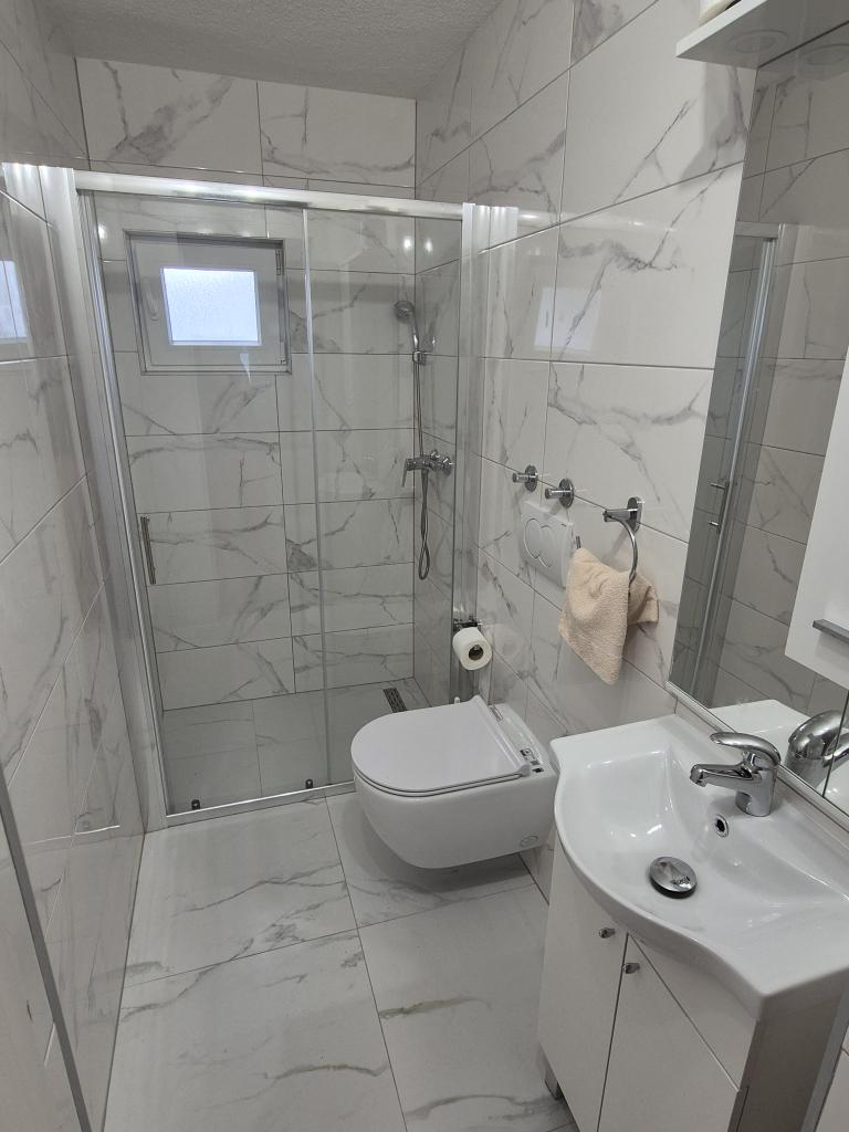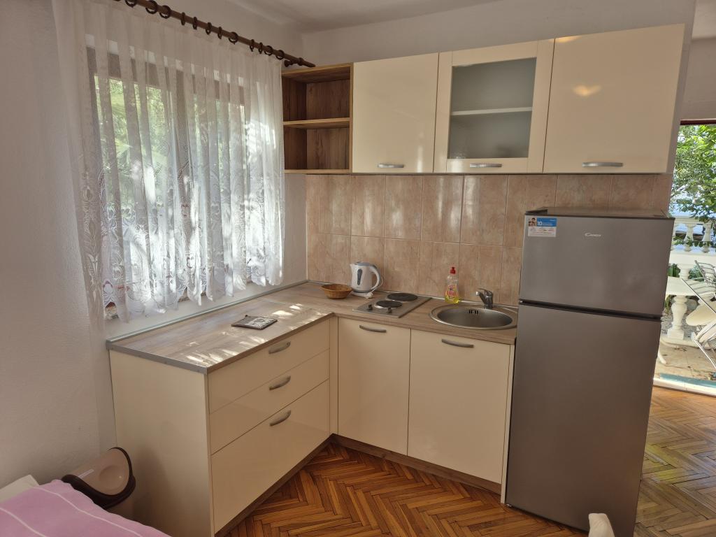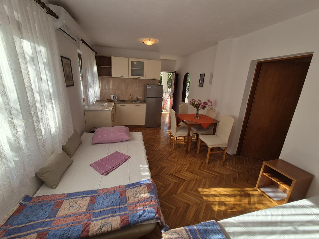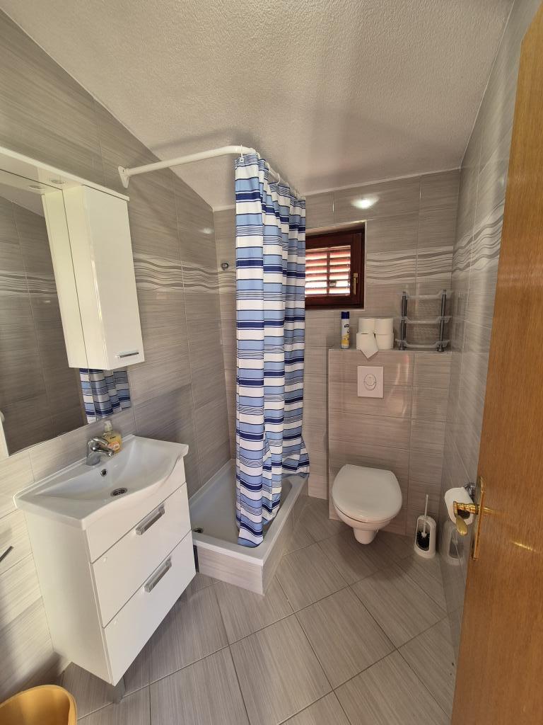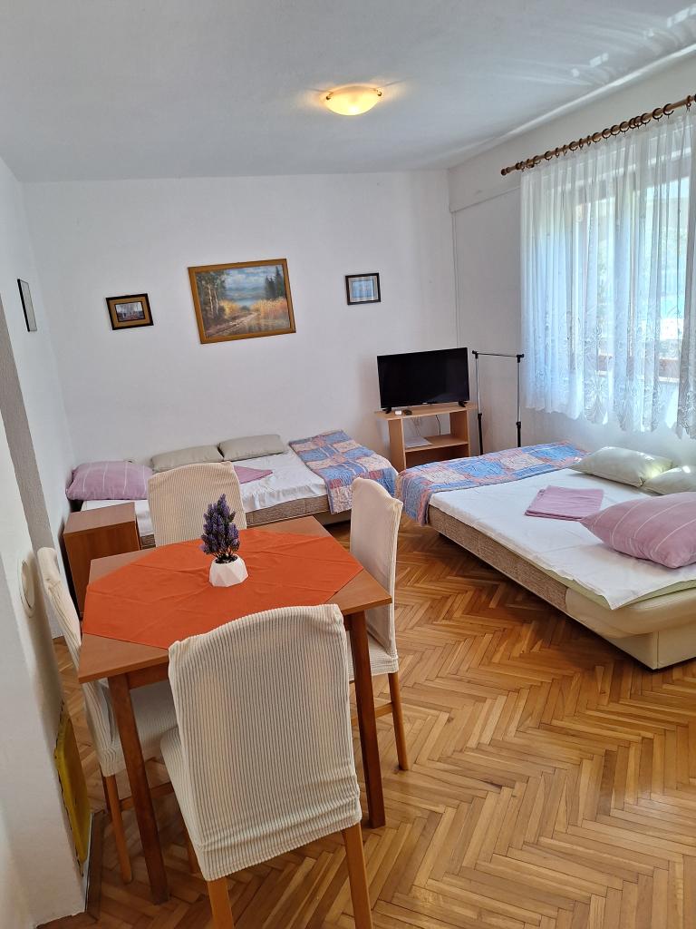 A wonderful facility, we used the app 2+2+2, we were delighted with the clean and tidy accommodation, spaciousness, peace and quiet. Apartments in abundance of greenery and shade in the summer heat. Close to the beach. The owners are extremely accommodating, friendly and available for all inquiries. We were particularly impressed by the owner's help with the grill, preparing the fire, and everything else we needed for grilling. Homemade wine for a welcome but also for a pleasant stay. Unobtrusive, yet available! Congratulations, we will be back next year!