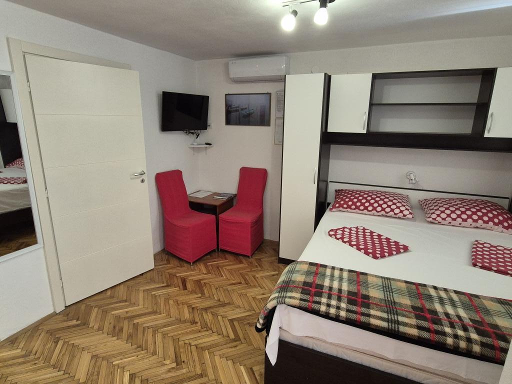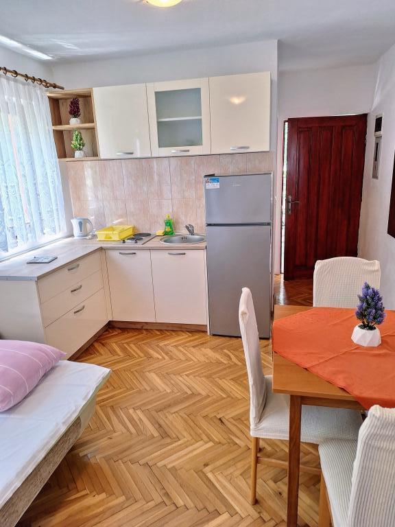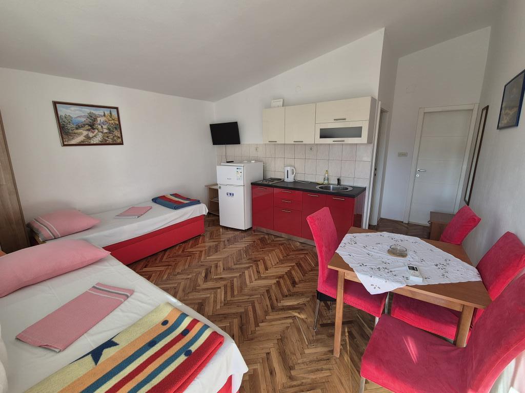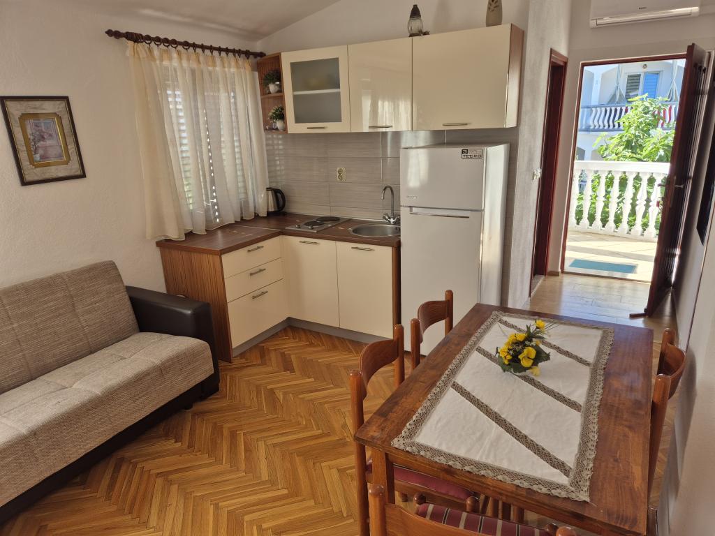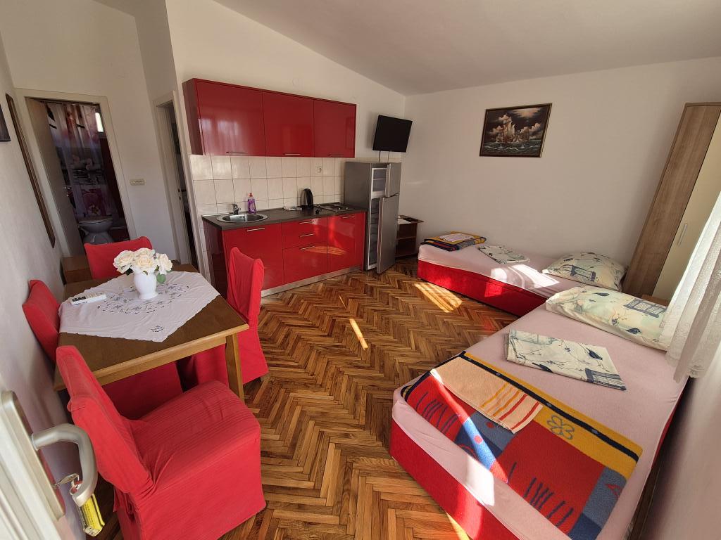 A wonderful facility, we used the app 2+2+2, we were delighted with the clean and tidy accommodation, spaciousness, peace and quiet. Apartments in abundance of greenery and shade in the summer heat. Close to the beach. The owners are extremely accommodating, friendly and available for all inquiries. We were particularly impressed by the owner's help with the grill, preparing the fire, and everything else we needed for grilling. Homemade wine for a welcome but also for a pleasant stay. Unobtrusive, yet available! Congratulations, we will be back next year!