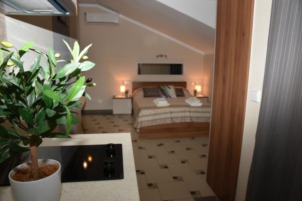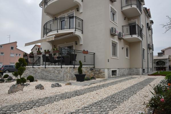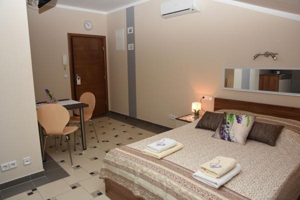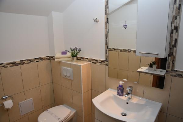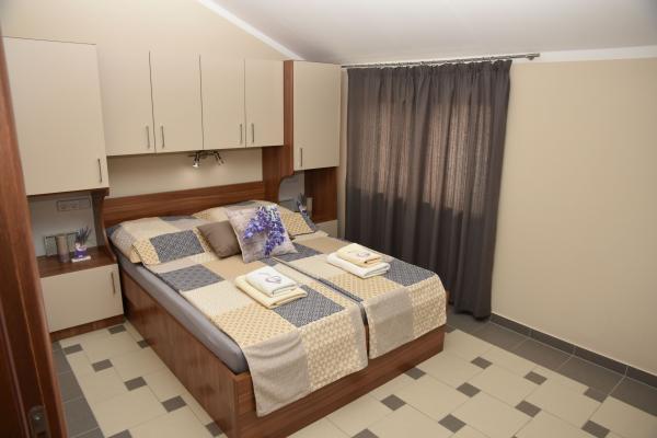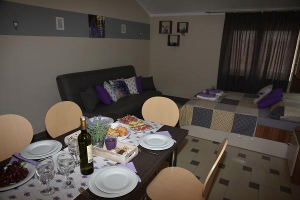 Apartments Lavendula offer quality accommodation near the beach. The apartments are located in a newly built apartment house with beautifully landscaped gardens, play area and entertainment area and private parking space. The house is 450 m from the beach, and within 600m from the house there are restaurants, market, ATM, amusement park .... The accommodation is suitable for a family stay in Vodice. The accommodation is offered in 9 newly built apartments. Each accommodation unit features a fully equipped kitchen, double bed, extra bed, bathroom (toilet), air conditioning, internet, satellite TV, window comanche and balconies with table and chairs. Guests of the apartments have use of: play and party room with darts, billiards table and table football, organized garden with garden furniture and grill usage, parking space. Additional services (extra charge) -Location of bicycle rental -Transfer from / to the airport -Transport service We wish you a heartfelt welcome and a pleasant stay in Apartments LAVENDULA Vodice