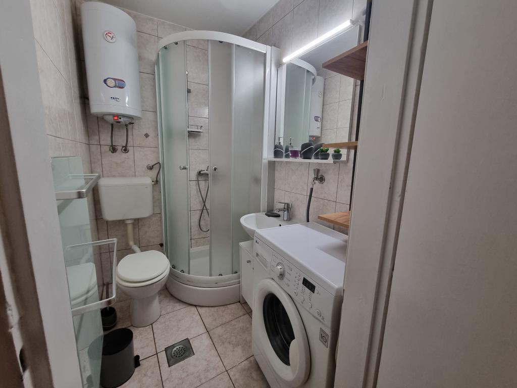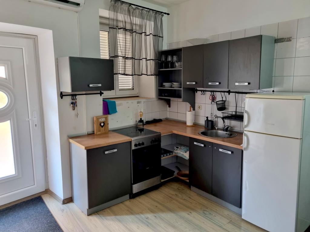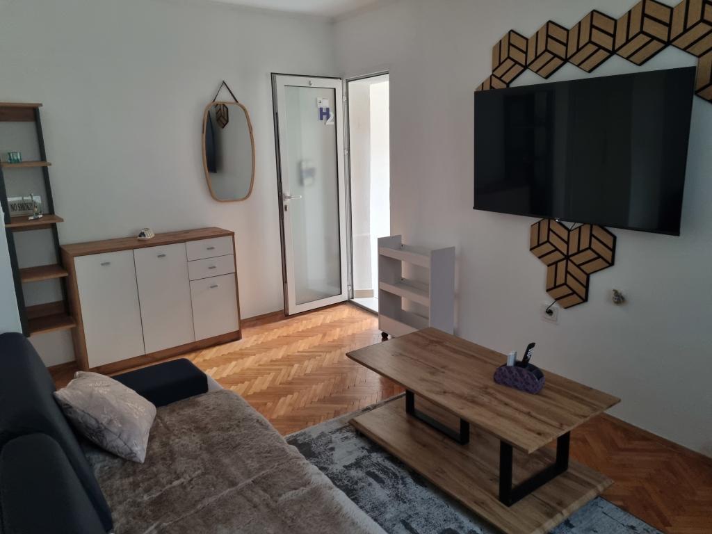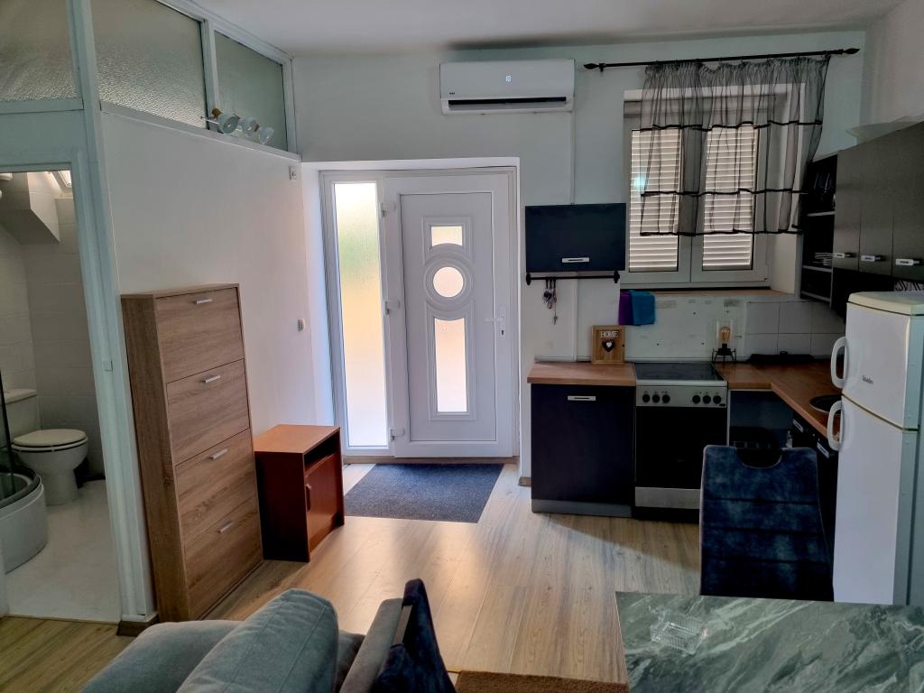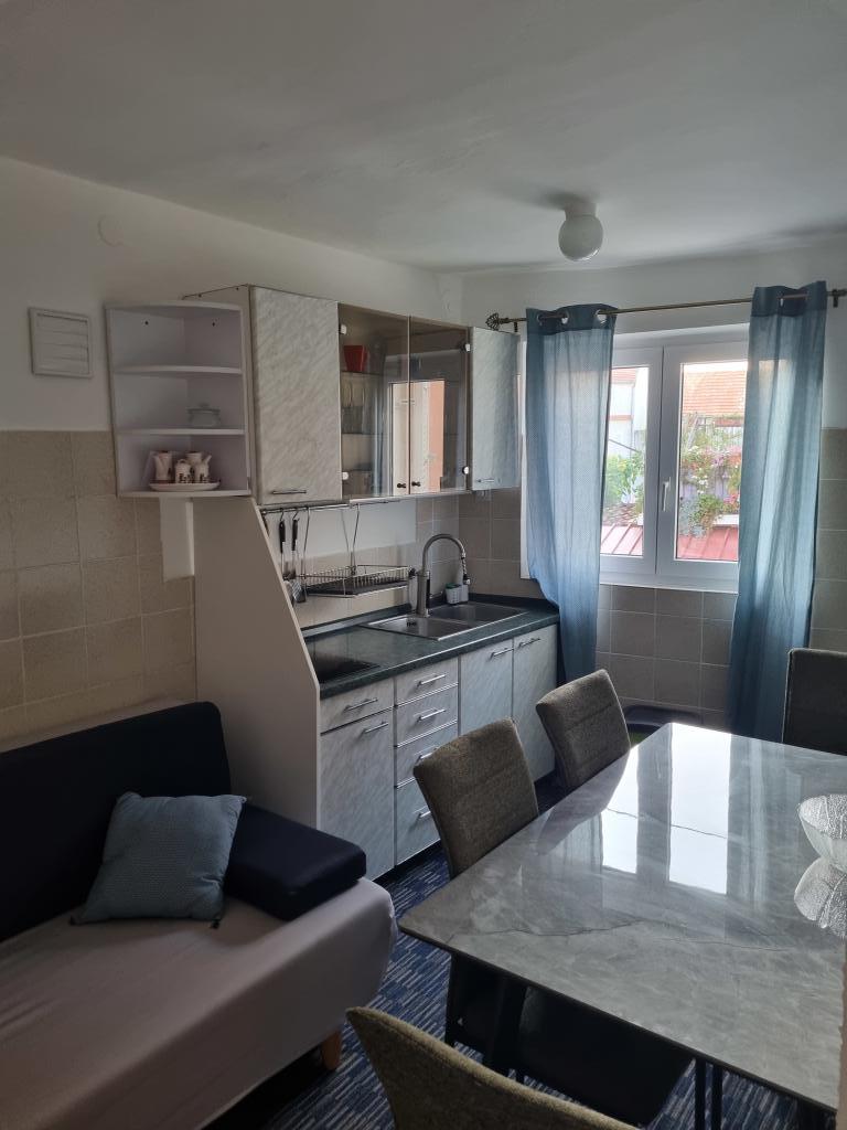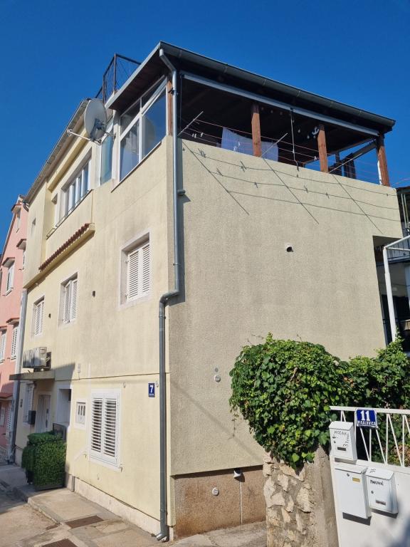 The house with apartments is located in the center of Vodice, in a small side street. Guests of both apartments have at their disposal a covered terrace with a mural and a space for rest and socializing, as well as a roof terrace with a grill, deckchairs and a view of the sea and the city.