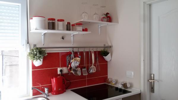Apartments Luce and Nino are located in a family house in the old center of Vodice. The apartments are only a five-minute walk from the pebble-sand beach, a minute from cafes, shops, a bakery and the park, and 2 minutes from the waterfront and all summer events. Both apartments are modernly decorated, have air conditioning, TV and Wi-Fi, which are included in the price of a night's stay. Apartment Luce, 35m2, on the ground floor of the house, has a separate bedroom with a double bed, a large open-plan living room connected to the kitchen and a bathroom. Apartment Nino, 30m2, is a studio apartment for two people - it is located on the first floor of the house, and consists of a living room with an open kitchen and a bathroom. The sleeping area is visually separated by a counter.
