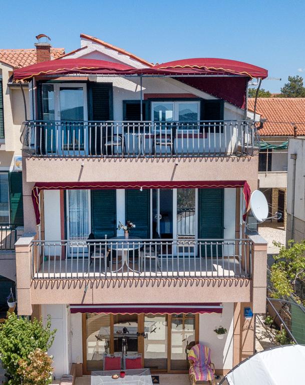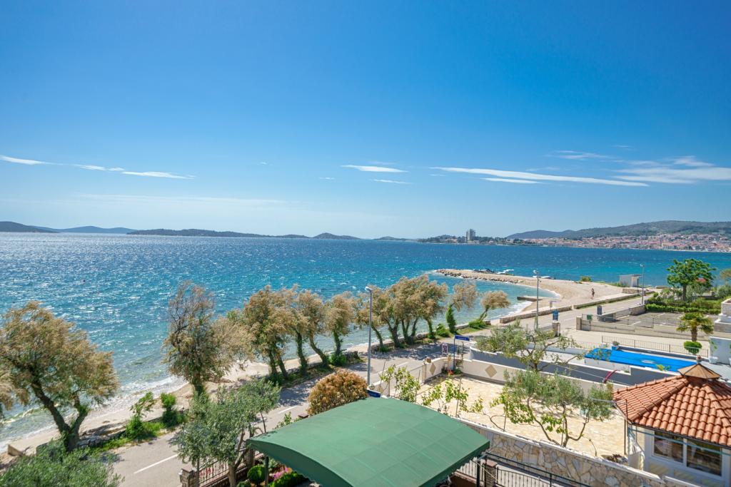Vodice Apartments Marija Vulić only 6 meters from the sea, first row to the sea. Renting an apartment in Vodice can be for several people. A large beach right in front of the apartment, everything is tidy, the sea is clean. Extremely attractive location with countless contents for all generations, whether young or old. Close to shops, center, catering program, discotheque, outdoor party, beach cocktail, music, fishing. Secure parking, air conditioning, Wi-Fi, satellite television, kitchen, bathroom, bedroom, living room, a really beautiful terrace and a view of the indented Adriatic coast. In front of the house there are two moorings for the boat. Choose one of the 3 apartments on offer today, in order to ensure you the best appointment. You will feel at home with us. We respect your privacy and are always at your service if you need any advice.