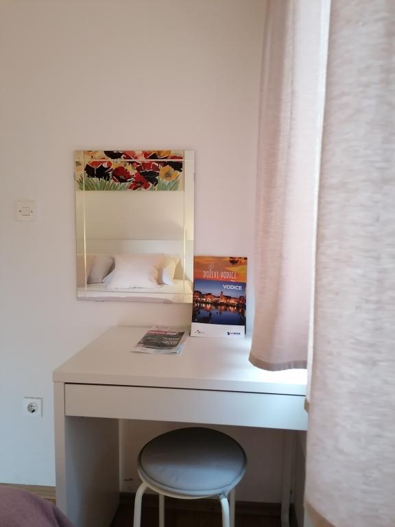 Apartments Marita are located on the 1st floor of a family house in a quiet street (Stablinac XI), Vodice. They are located near the Imperial and Olympia Hangar pebble beaches with natural shade and numerous sports, recreation and entertainment facilities, about 10 minutes' walk away (approx. 700 meters). The first shop can be reached in 5 minutes, and the center of Vodice in 20 minutes along the promenade by the sea. Guests are provided with free Wi-Fi and a parking space in the private yard.