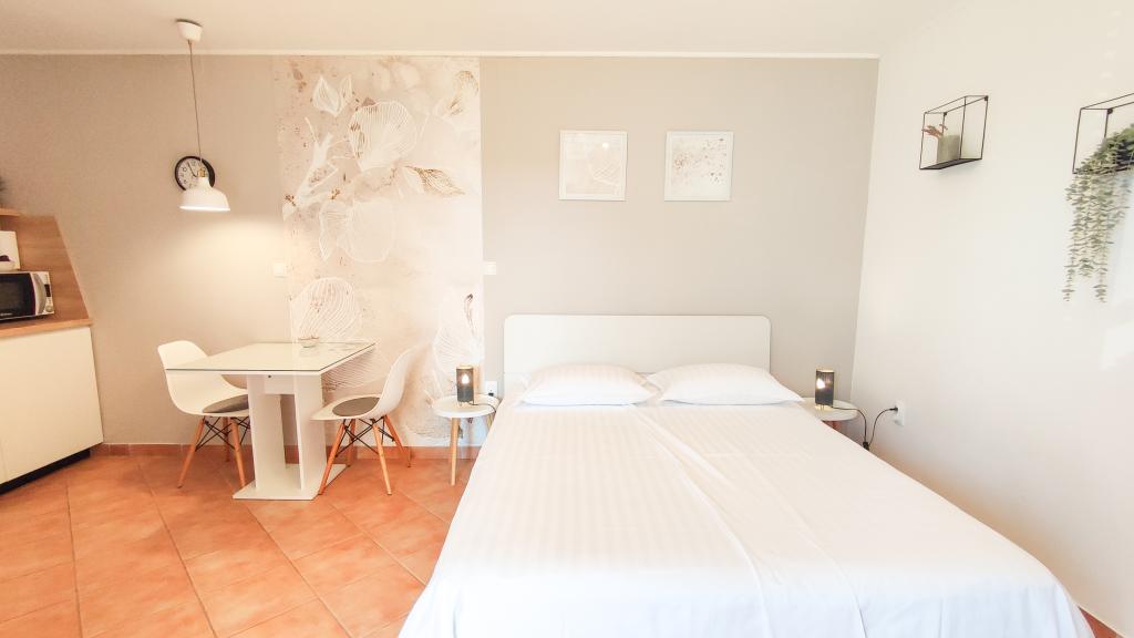 We booked A4 Deluxe. The apartment is very spacious and has everything you need to feel comfortable. The owner Marija is super nice. Pampered us with juice, wine and freshly plowed figs. I can absolutely recommend this accommodation.