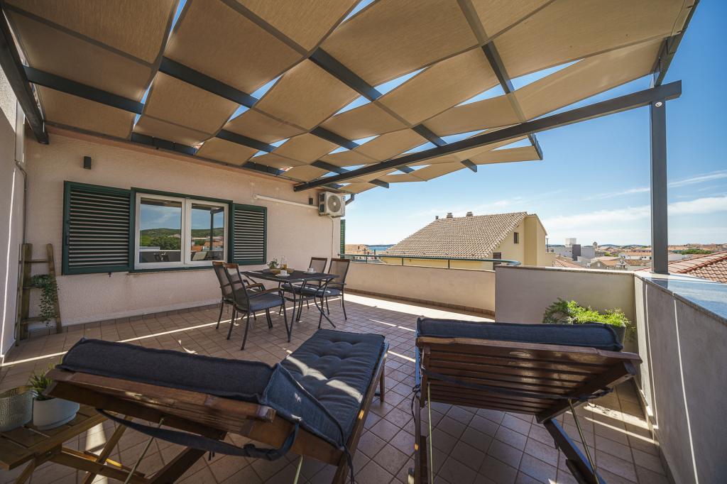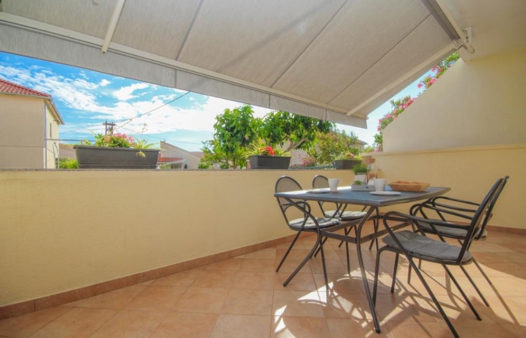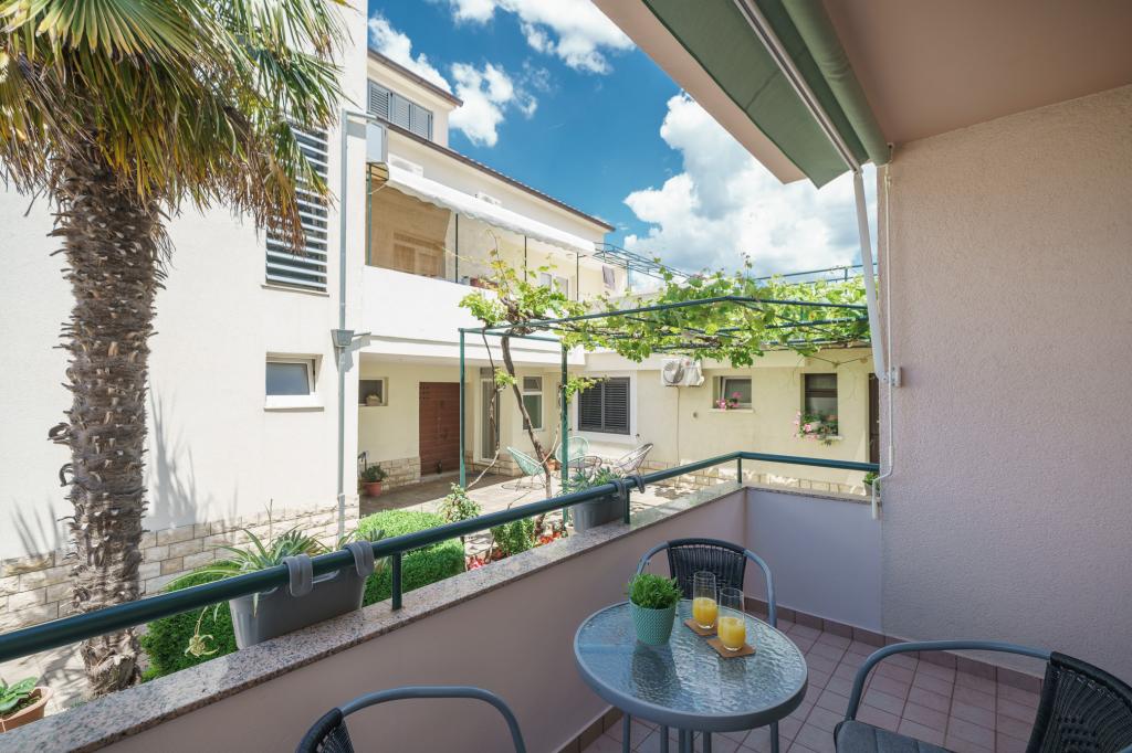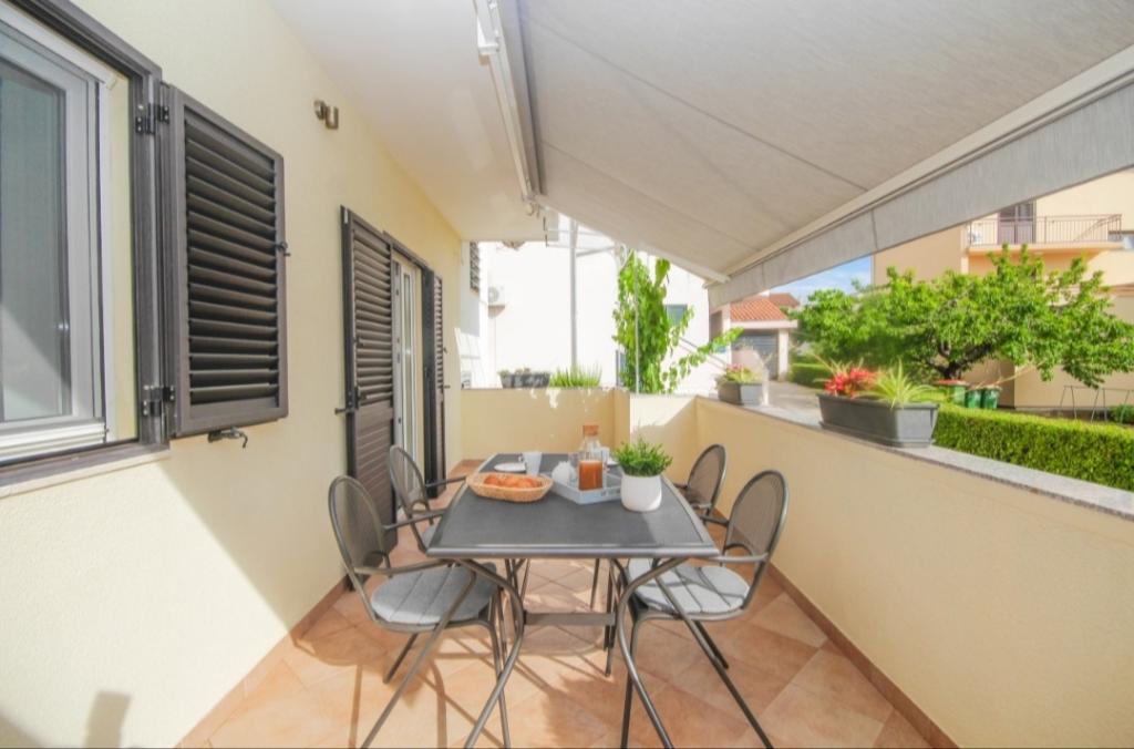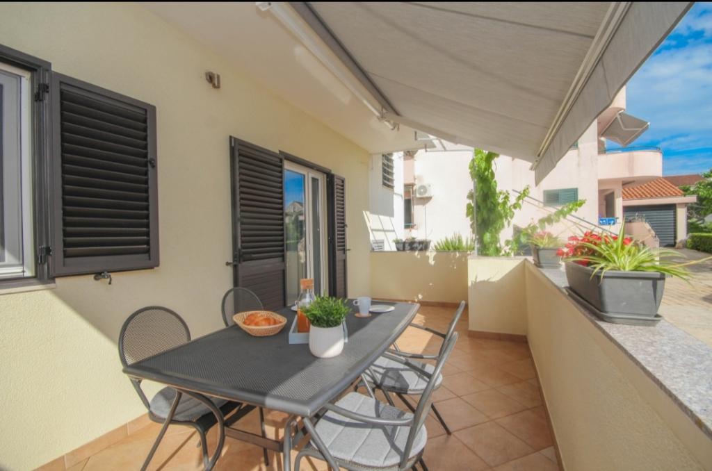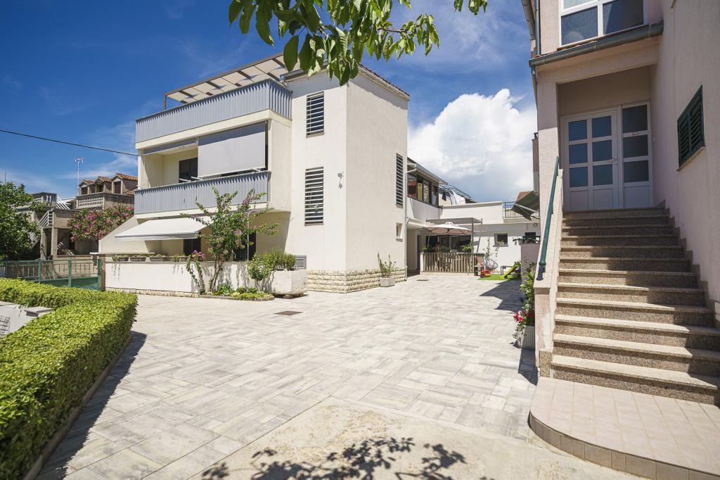 Welcome to Family Petrov Apartments! We offer comfortable accommodation in 5 modernly equipped apartments, perfect for smaller groups or larger families who want to enjoy a relaxing holiday. They are located in two family houses with their own entrances, arranged on the ground floor and on the first floor. Each apartment has its own separate entrance and private covered terrace. Our location is ideal - we are located in a quiet area, away from noise and traffic, yet only a few minutes walk from the center of Vodice and the pebble beach of Male Vruje. In the immediate vicinity (50 m) there are supermarkets, cafes, a bakery, a pharmacy, so all your necessary amenities are within reach. We invite you to spend your holiday in a peaceful environment!