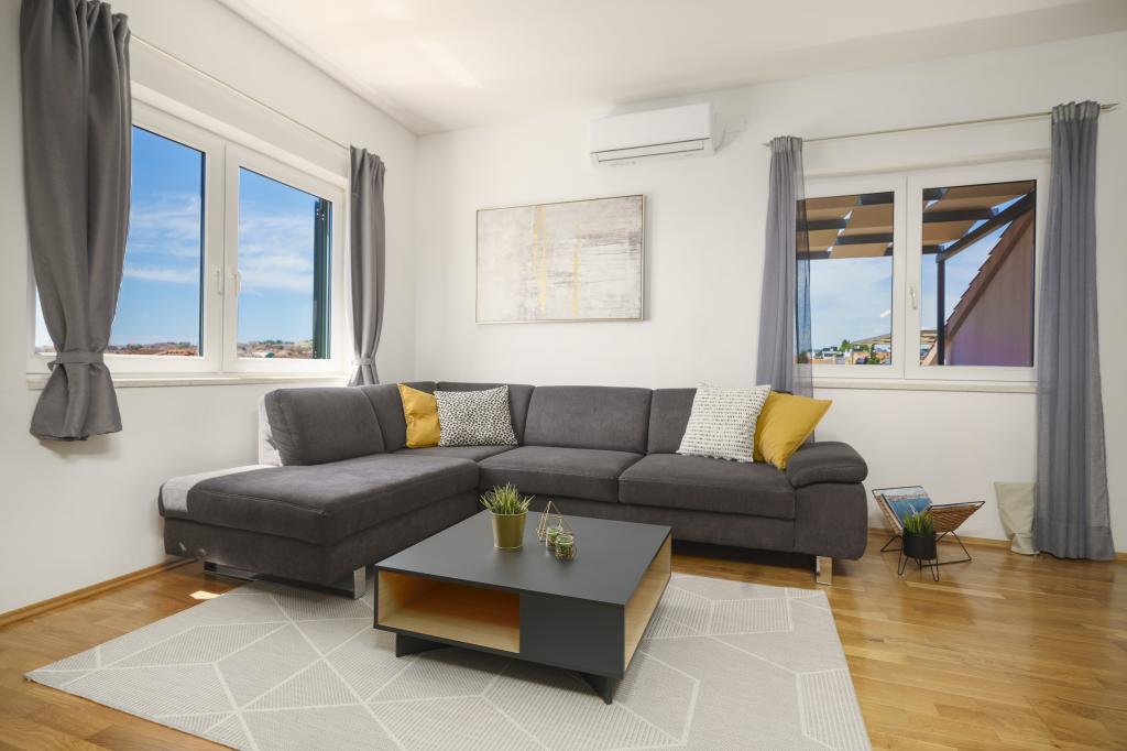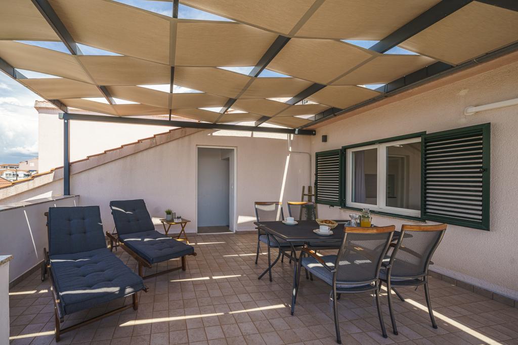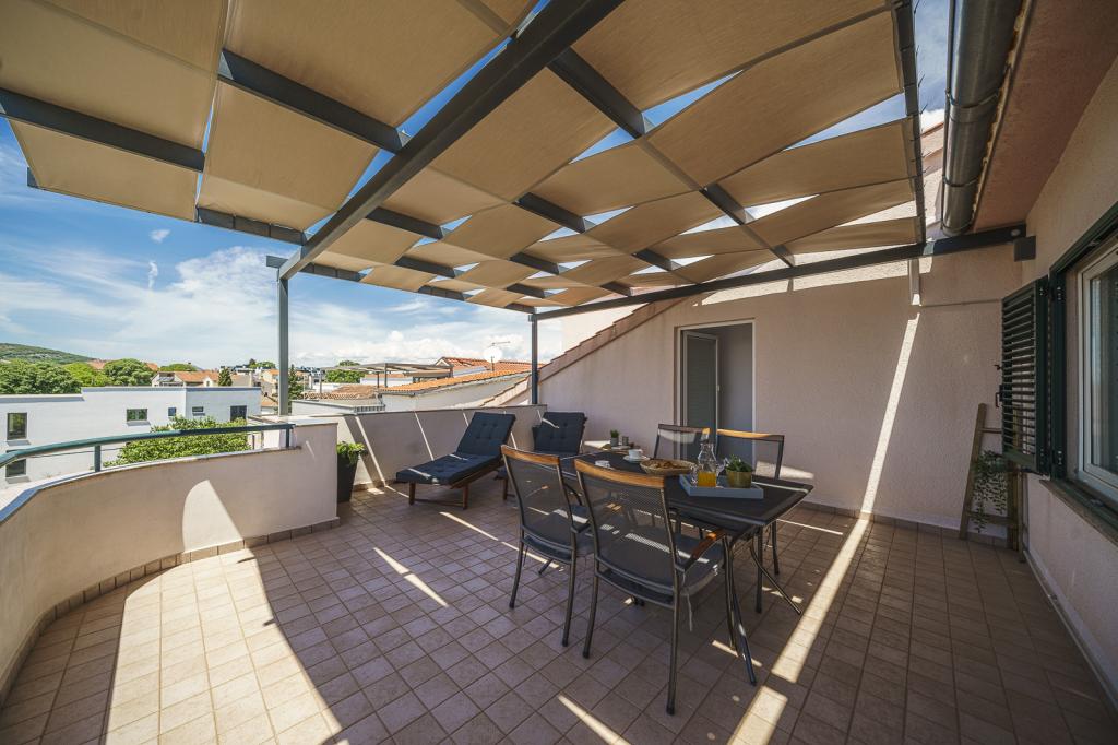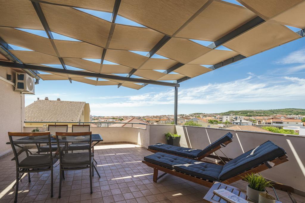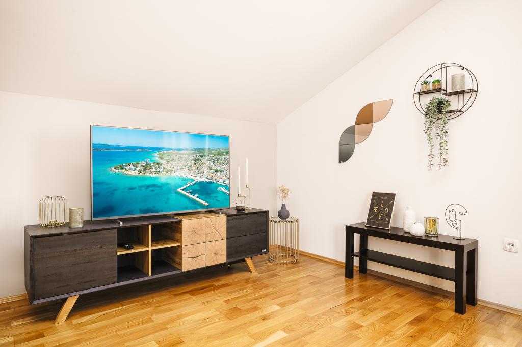 Welcome to Family Petrov Apartments! We offer comfortable accommodation in 5 modernly equipped apartments, perfect for smaller groups or larger families who want to enjoy a relaxing holiday. They are located in two family houses with their own entrances, arranged on the ground floor and on the first floor. Each apartment has its own separate entrance and private covered terrace. Our location is ideal - we are located in a quiet area, away from noise and traffic, yet only a few minutes walk from the center of Vodice and the pebble beach of Male Vruje. In the immediate vicinity (50 m) there are supermarkets, cafes, a bakery, a pharmacy, so all your necessary amenities are within reach. We invite you to spend your holiday in a peaceful environment!