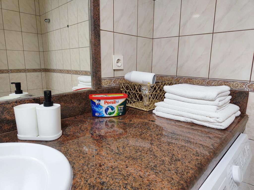 There are spices, oil, vinegar and detergent in the kitchen. Capsules are also provided with the coffee machine. Tablets and capsules for washing machines and dishwashers are available with the appliances. The ironing board and clothes iron are located in the common area and are available to everyone. We are at your disposal for all inquiries and suggestions, be it for excursions, boat rentals, bicycles, etc.
