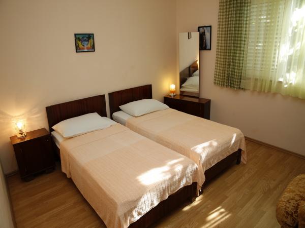 Spadina Apartments are located in a quiet street, 5 minutes from the spacious, beautiful beaches and 5 minutes from the city center with all the facilities. We have 2 apartments and 1 studio apartment. . Guests provide linens, towels, and a fully equipped kitchen and are offering a free, secure parking. in the yard. One is a studio apartment for 2 people, the second is the apartment for 4-5 persons (2 bedrooms, kitchen, bathroom and terrace, and a third apartment for 4-6 persons (2 bedrooms, kitchen, bathroom and balcony.. All 3 apartments are air conditioned and have internet, satellite / TV, and guests have at their disposal a terrace / balcony in every apartment. Each apartment has its own entrance All guests can use the grill in the backyard.
