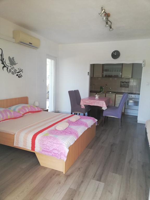 The facility is located 40 meters from the beach. In front of the building you have secured parking and an outdoor shower. The facility contains three apartments. Along the coast there are restaurants and cafes, a market, a tourist bureau, a park and a playground for children. The distance from the bus station, clinic, pharmacy and bank is 2 kilometers.