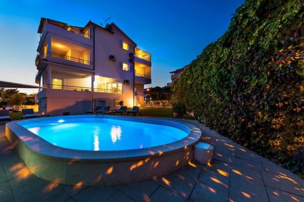 Apartments Tihi are located in the most attractive part of Vodice. The beach is a 5-minute walk away, and the city center is a 20-minute walk away. The shop is 100 meters away. All apartments have a balcony or terrace overlooking the sea. The facility features an outdoor pool, illuminated parking, outdoor grill, and seating area, a wireless connection (WiFi), all in the price content. For more information, please visit: www: apartmentstihi. com