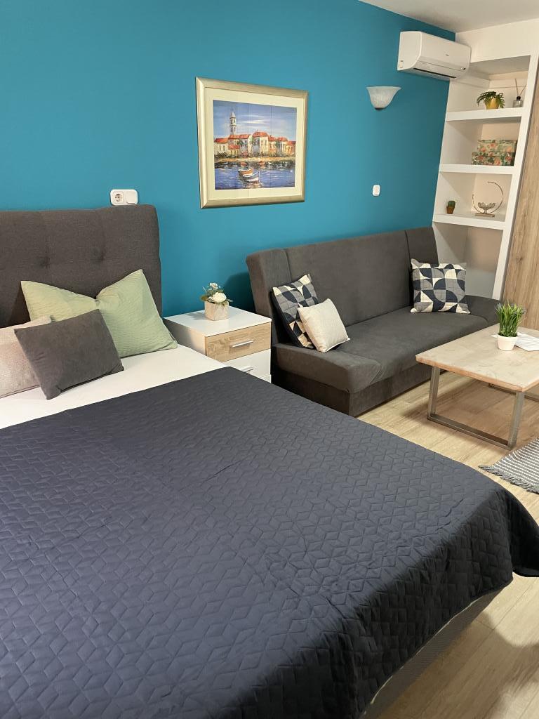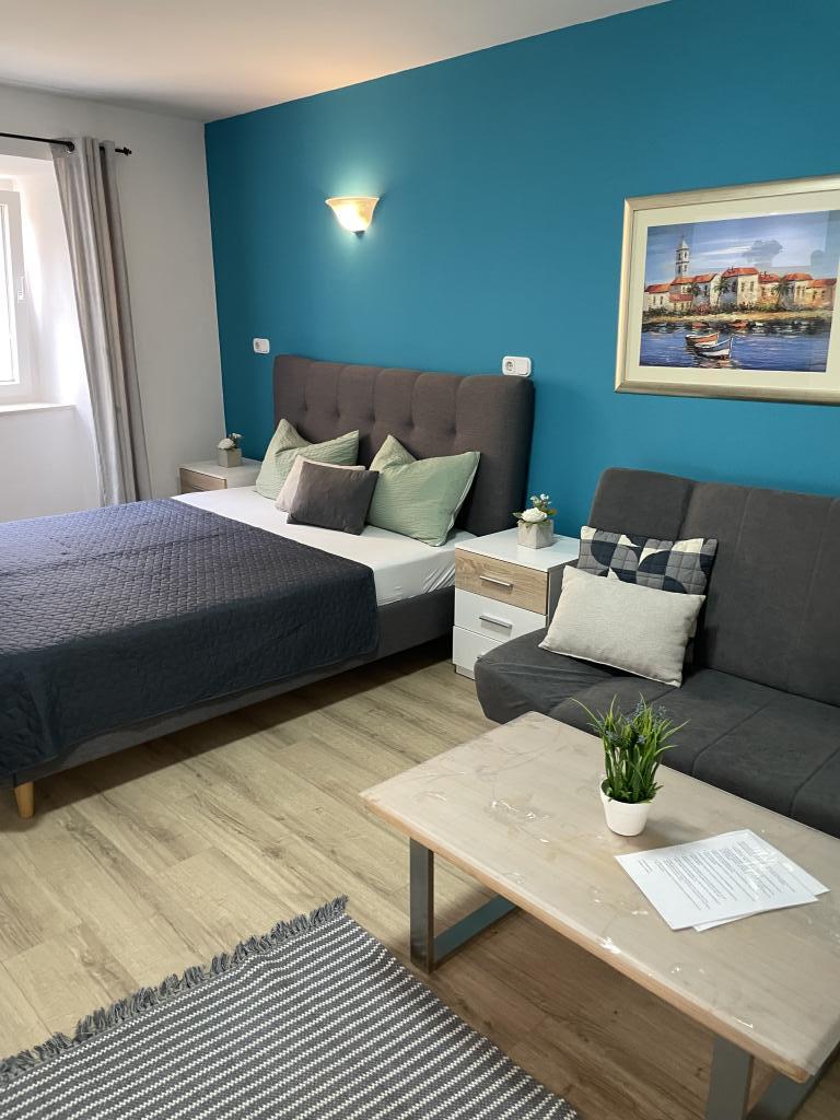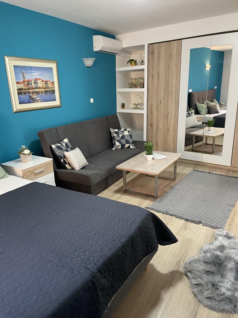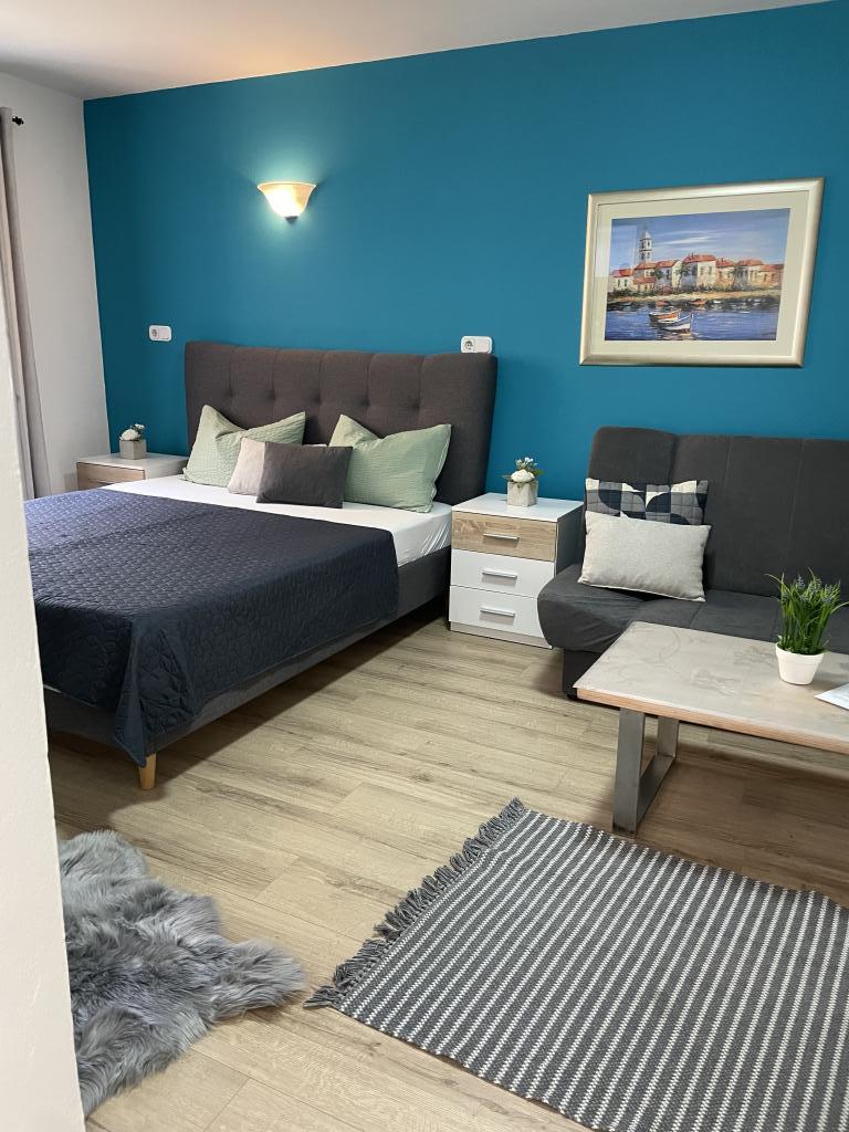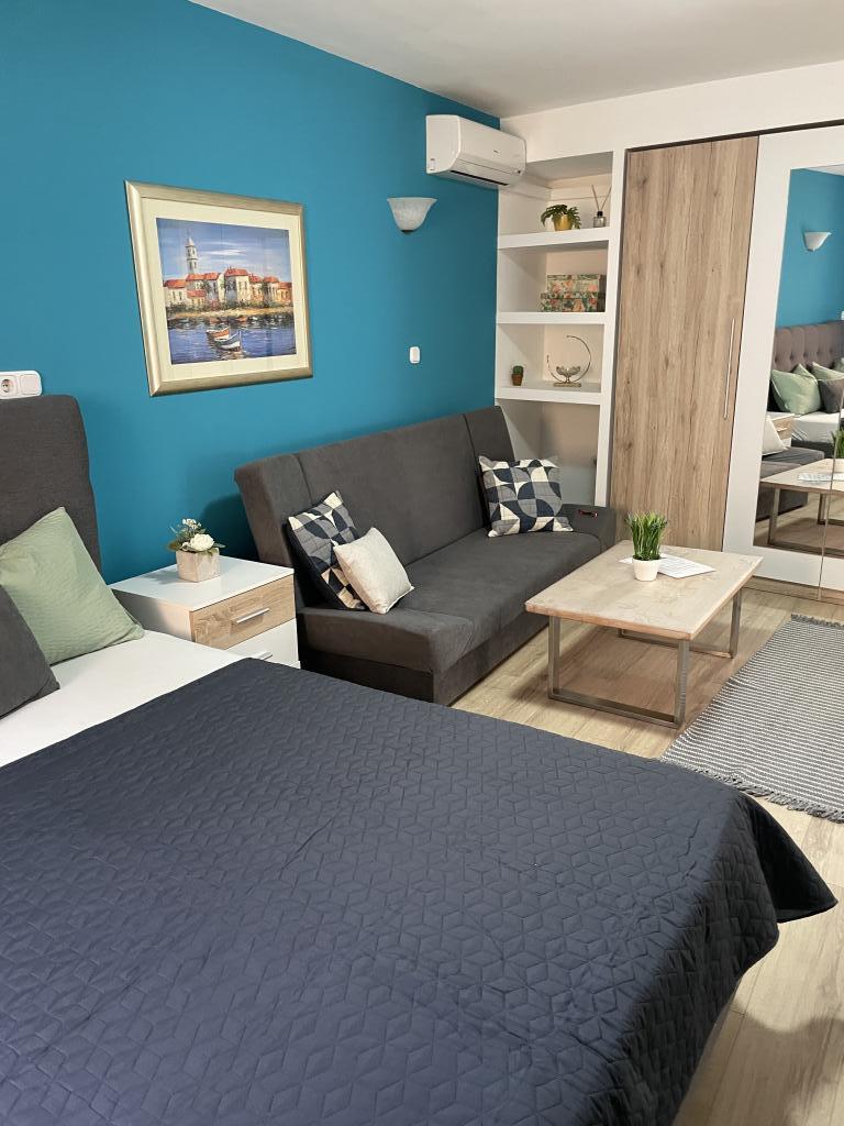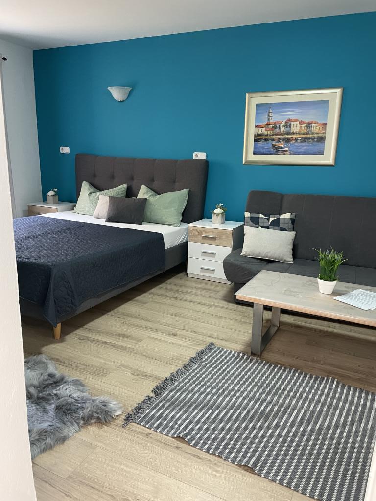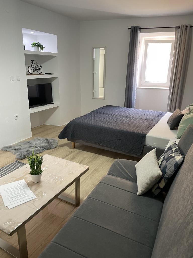 Fully and modernly equipped apartments in the center of Vodice, located some 150 meters from the sea. The facility is located a 1-minute walk to the center and a 5-minute walk to the beach... Special apartment in the style of a tavern with two bedrooms. One bedroom with a double bed and one bedroom with a double bed and a single bed. In addition, you have an apartment with a sea view also for 5 people with two double beds in 2 rooms with one extra bed for 3 people, and a balcony with a beautiful view of the sea 2 Apartments 2+1 people with a double bed and an extra bed and one of these two apartments also have a balcony. Special offer for 6 and 9 months: pay for 5 nights and get one night free!! In addition, you have free parking. Welcome to beautiful Vodice