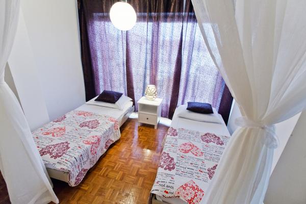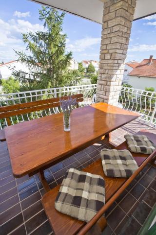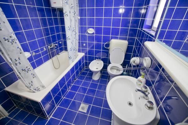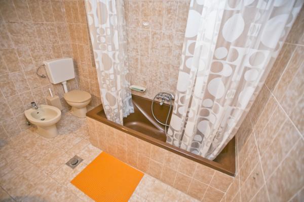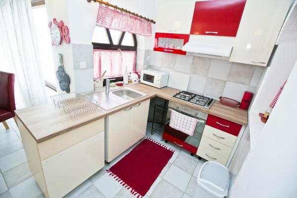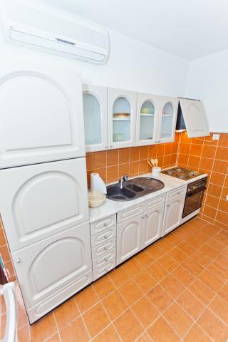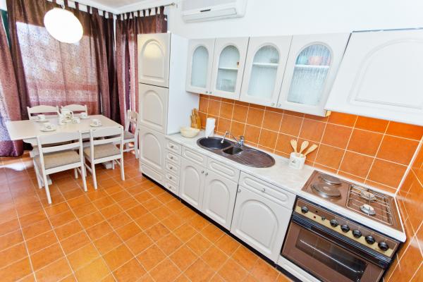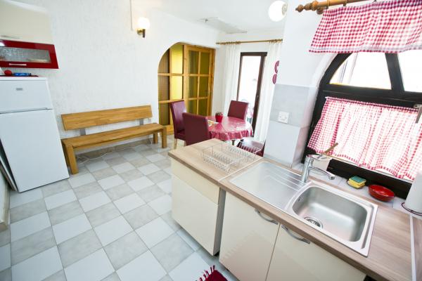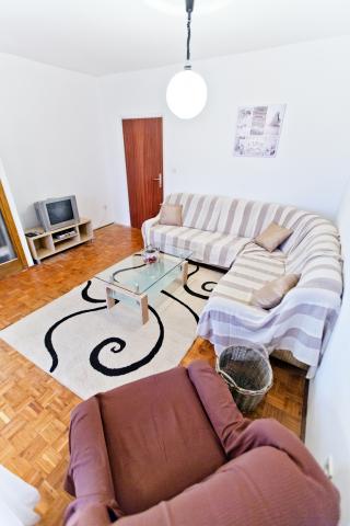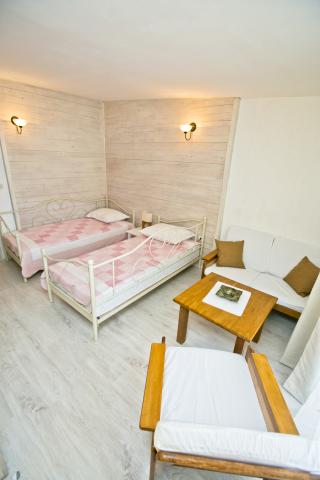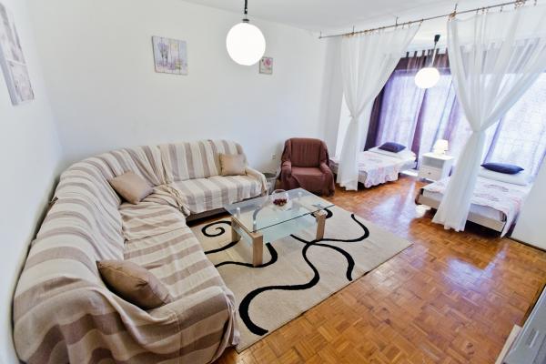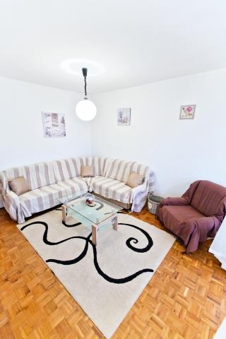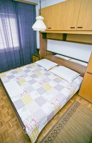 Fully equipped apartment with one bedroom with a double bed and a living room containing visually separate area with two additional beds. The apartment also has a bathroom, a kitchen with a dining room and terrace. Parking is available. Guests can also use the grill.