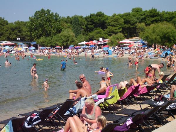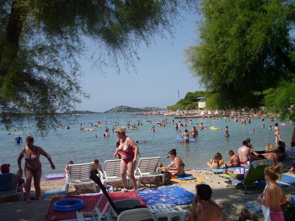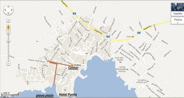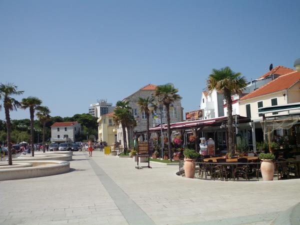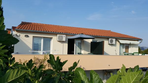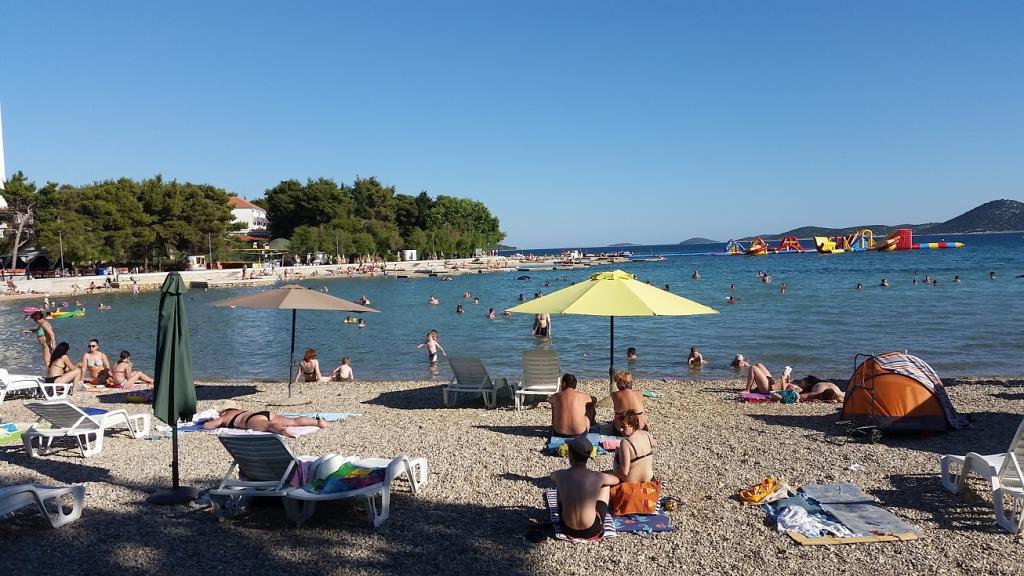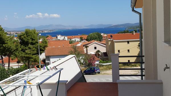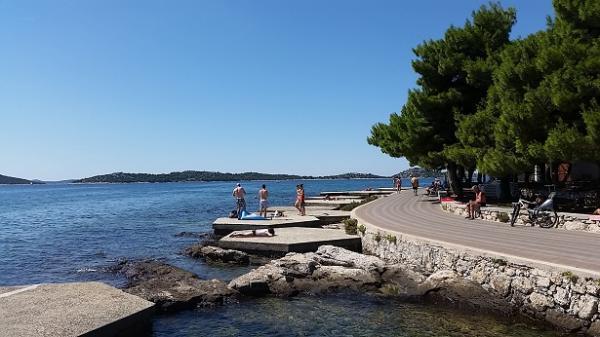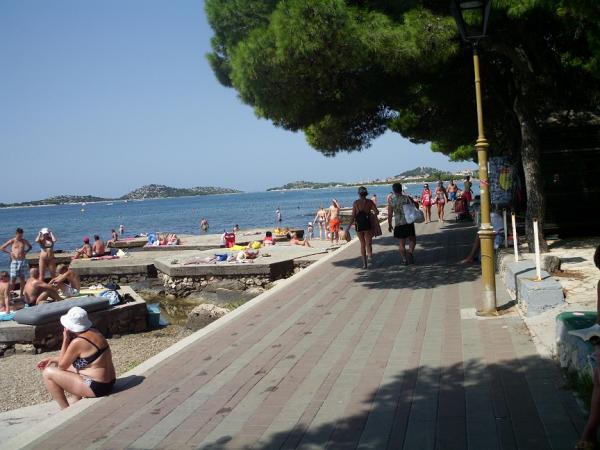 Fully equipped apartments with terrace, sea view and separate entrance. . They consist of; living room with sofa bed (140/200 cm), kitchen, bedroom (bed 160-200), bathroom and hallway. Air conditioned, washing machine (in a separate area), electric grill, satellite TV and Wi-Fi internet. Parking secured, grocery store on the ground floor. Garden in front of the house. The apartments are located 300 m from the Center and 400 m from the Beach. Pebble Blue Beach not far from the hotel Punta and which was awarded a blue flag. The beach is one kilometer long and the paths are flat stone, concrete, grass or covered with mosaic tiles. There are several showers and a public toilet. Much of the beach is covered by pine and tamaris, there are several cafe-bar services in natural shade. Vodice has a rich tourist tradition and a variety of offers and there are 2 national parks nearby