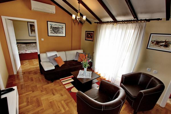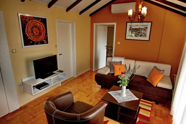 The apartment is located in a family house, near the city center and all necessary facilities: markets, shops, banks, clinics, pharmacies, bus stations, airports and various dining and entertainment. Dead end with three family houses and parking in the shade of grape vines, provides night peace and odmor.Apartmani a closed surface 65m / 2 and terrace 20m / 2, which is an awning protected from the sun, and green arlama of pogleda.Dvije double bedrooms, living room, kitchen and bathroom, make internal content apartment is equipped with all the equipment to work the whole year: central heating, air conditioning, TV, satellite, internet with the possibility of using summer kitchen (barbecue) and a garden terrace and washing rublja.Dozvoljeni are small Pets and smoking. We wish you a pleasant stay in our environment.