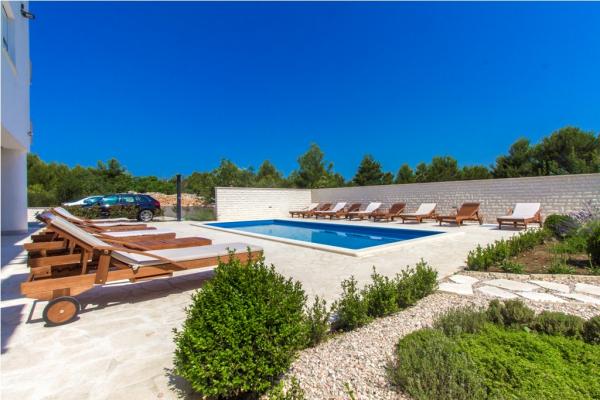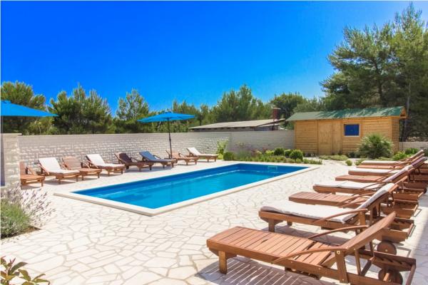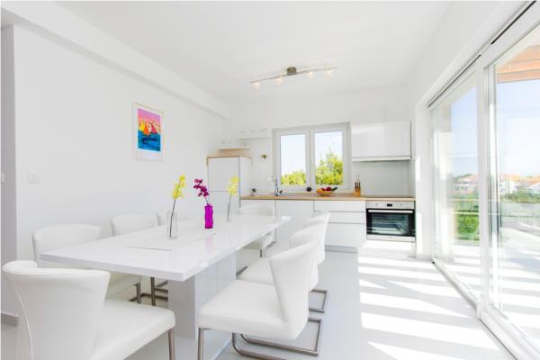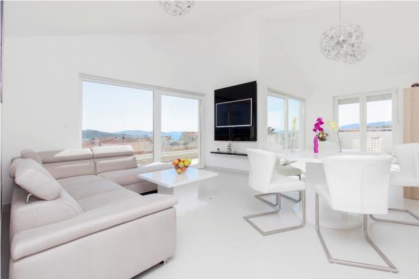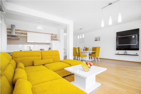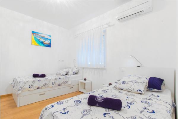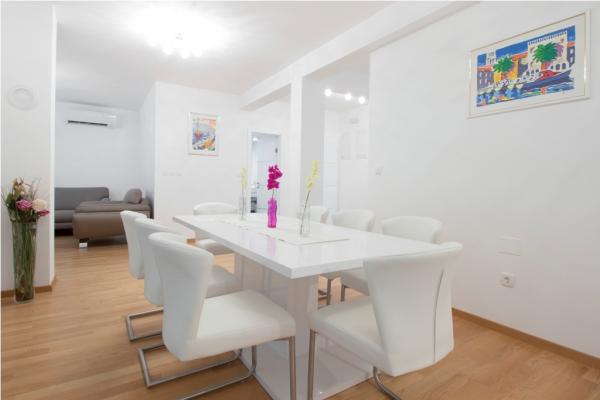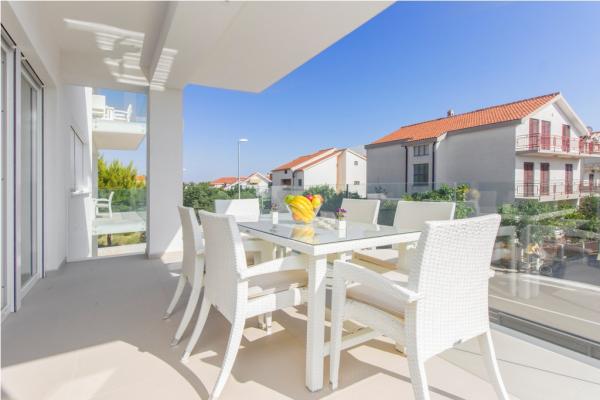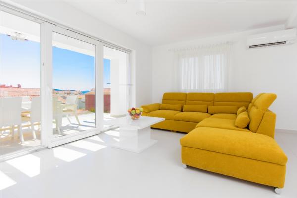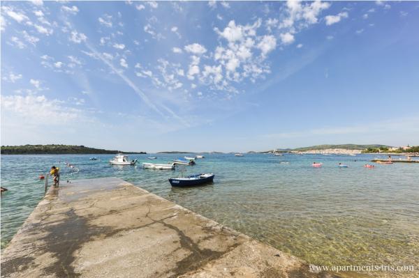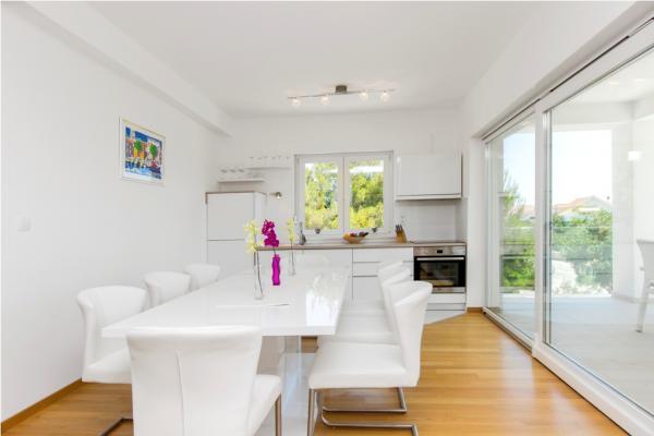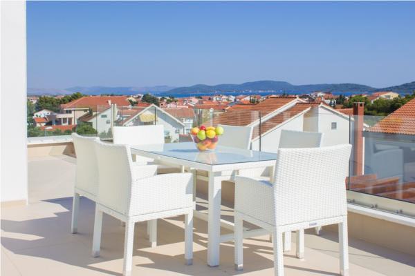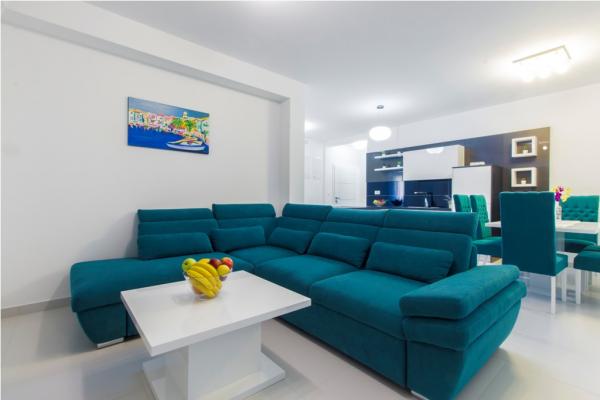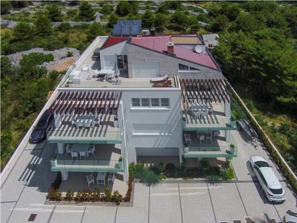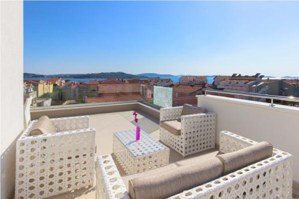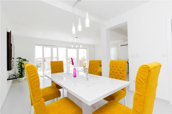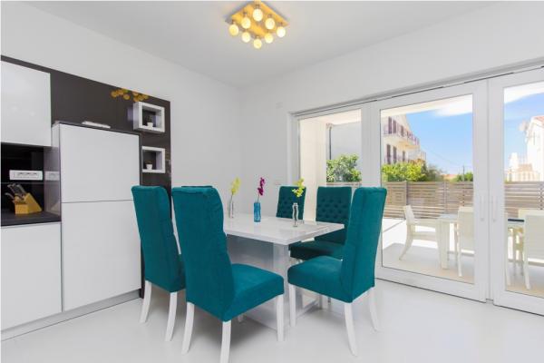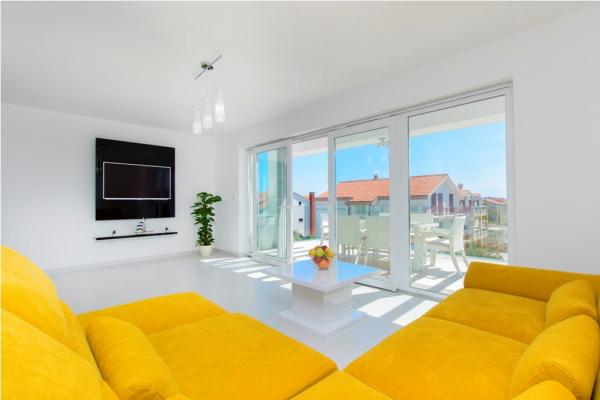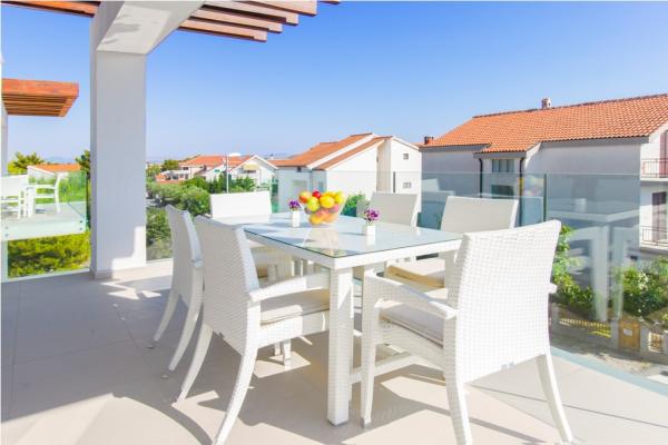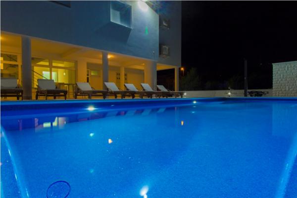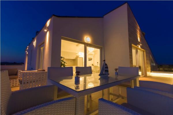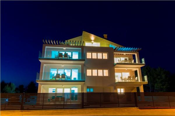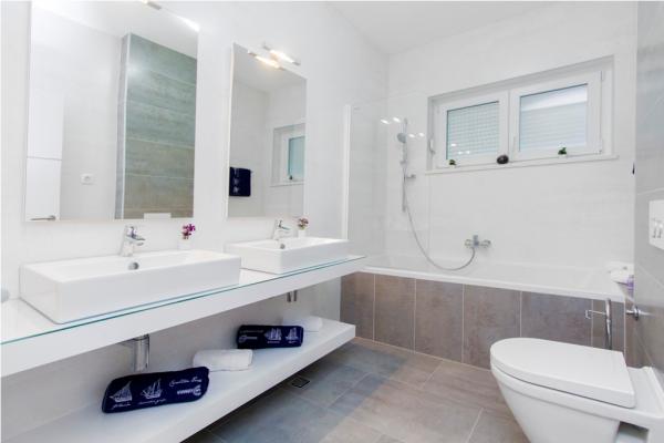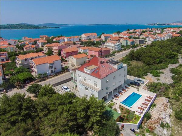 Villa Royal is composed of 6 apartments which are categorized with 5 stars. The villa has a swimming pool with sun loungers. Located in Srima village near the town, and is 350 meters from the sea. There are bright and air-conditioned apartments with free Wi-Fi, LCD TV with satellite channels, a terrace, and free parking. All modern apartments have air-conditioning in the living room and bedrooms, fully equipped kitchen with dishwasher and oven, electric and refrigerator. Each apartment has 2 bathrooms and toilets. The bathrooms are equipped with bathtub, washing machine, shower and hair dryer. The nearest beach is 350 meters, as well as a restaurant and cafe. Guidance Center is 1500 meters away, Sibenik 15 km, Zadar 60 km, Krka National Park 30 km Skradin 30 km, Split 90 km and is located near the National Park.