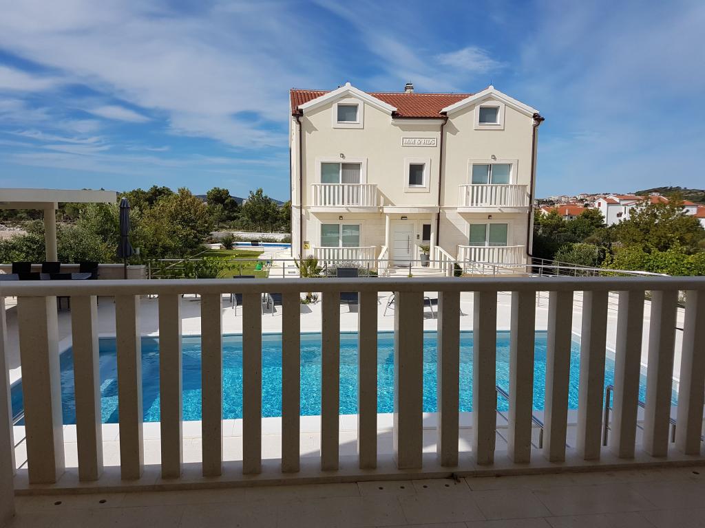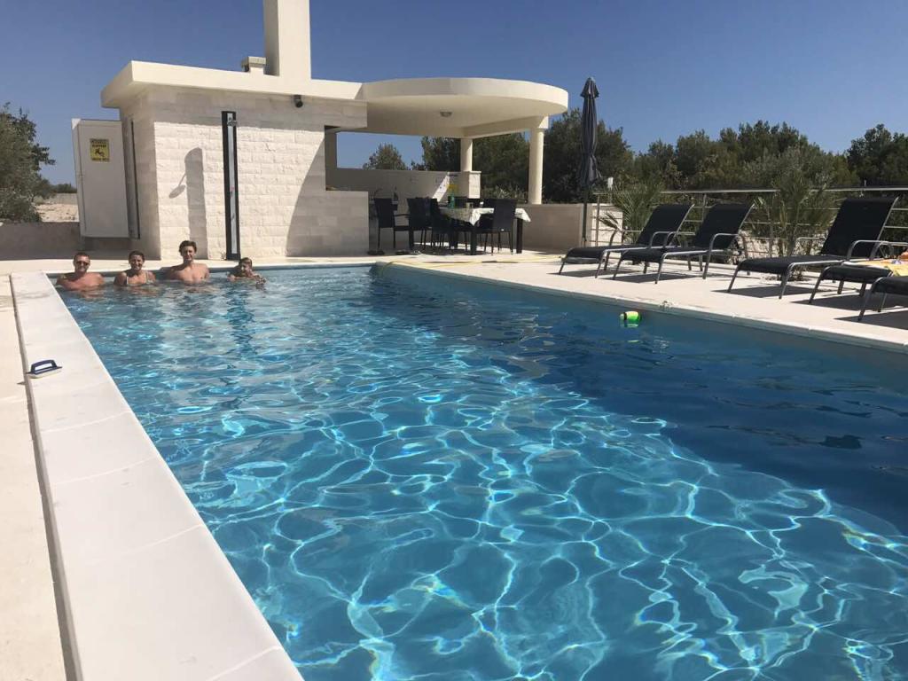 The luxurious Villa Bachelors contains four large apartments, C1, C2, D1 and D2 Penthouse. Each of them is 140 m2 in size and has a south-facing terrace of 35 m2. All but one apartment have a fully equipped kitchen, dining room, bedrooms for six people, living room with TV, three bedrooms, 3 large air conditioners, 2 bathrooms, one larger with double shower and sink. The other bathroom is standard in size. Large terraces with views of the city, sea, islands, pool and garden. The D2 Penthouse apartment enjoys spectacular views from the top floor. It has one large bathroom with double shower. Private outdoor area with two large swimming pools. Apartments C1 and C2 share one of these pools and the surrounding outdoor area with shower, toilet, sun loungers and grill house with a large table for 12 people. D1 and D2 Penthouse share the second pool with the surrounding outdoor area with shower, toilet, sun loungers, kitchen and grill house.