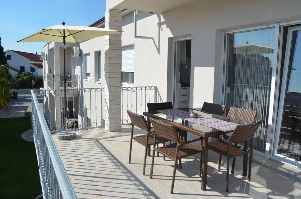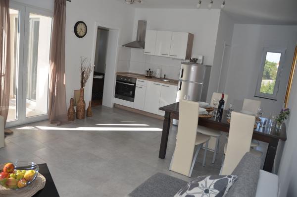 This year's summer holidays we spent in Srima, also in this apartment. We were delighted with the entire equipment and those small details that are usually overlooked everywhere. The apartment is very spacious, so that two children had at its disposal a lot of space to play. As if the room is not big enough, there is also a large terrace on which we have one little remark, otherwise it could have been a little more in the shade. In conclusion apartment is recommended for families, as children have plenty of space both in the house and the surroundings where the jungle. Not to mention the pizzas are very very tasty. Ps: All the locals were extremely helpful and friendly. Recommended! You will not regret!