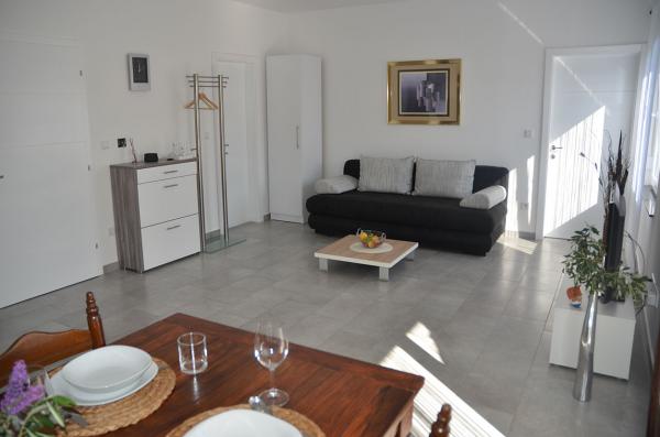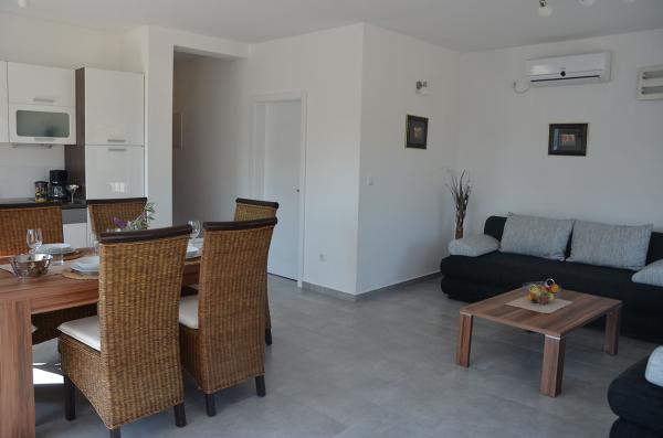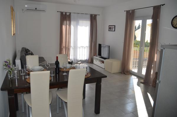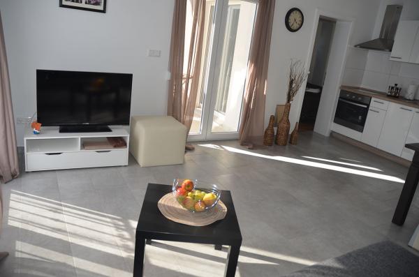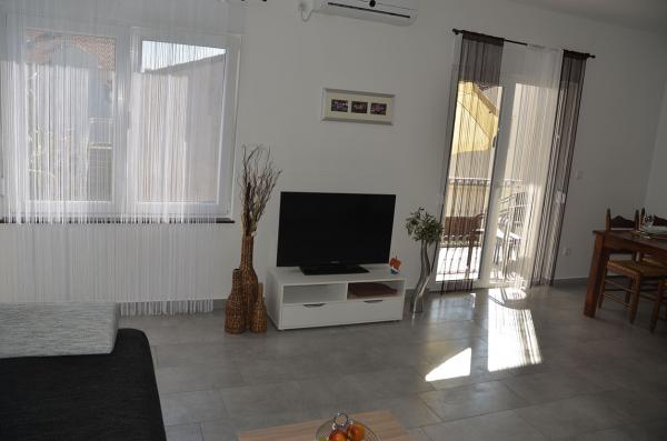 Modernly equipped apartment by the European standard near the center of Srima and only 200m away from the beach. Each apartment has one private parking space. In the room you will sleep on the Boxspring bed. There is an extra bed in the living room where 2 children can sleep. Apartments are equipped with air conditioning and satellite and 40LED TVs. Mosquito net is located on all windows.