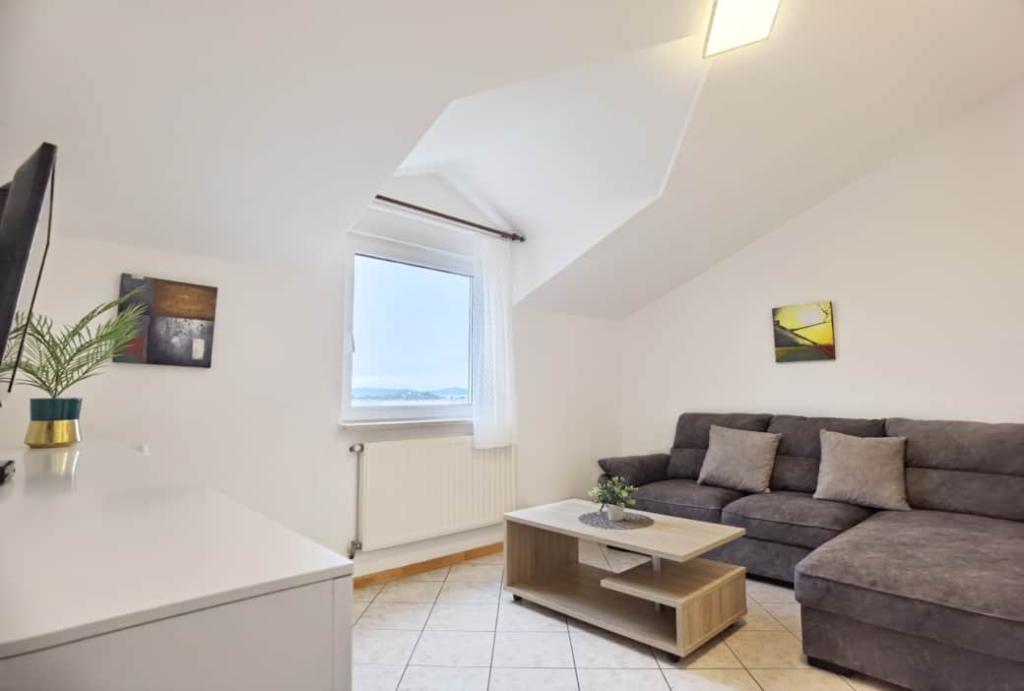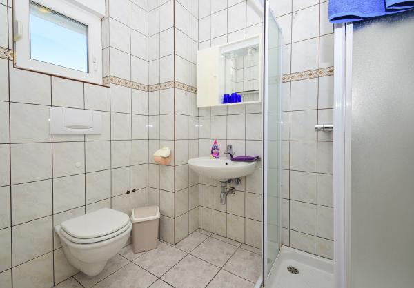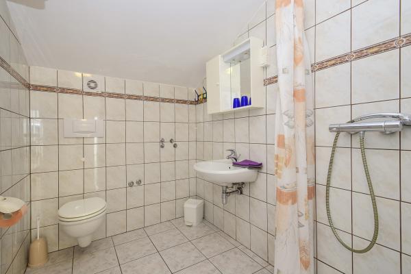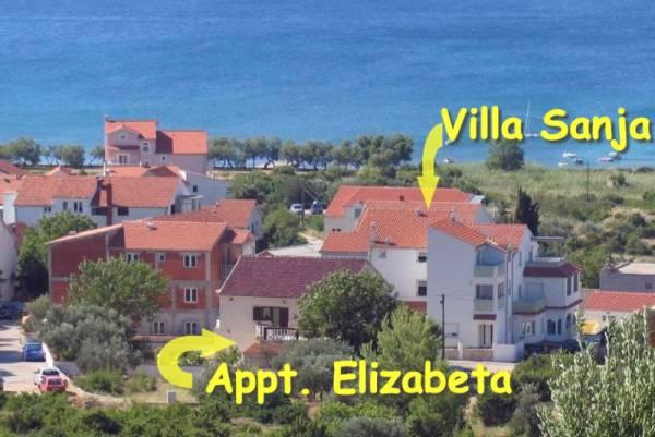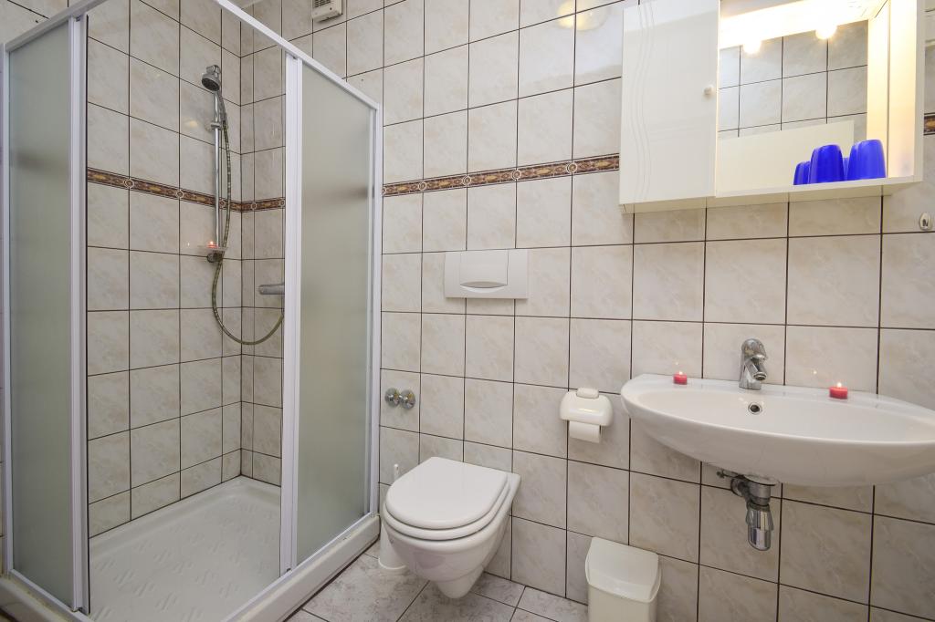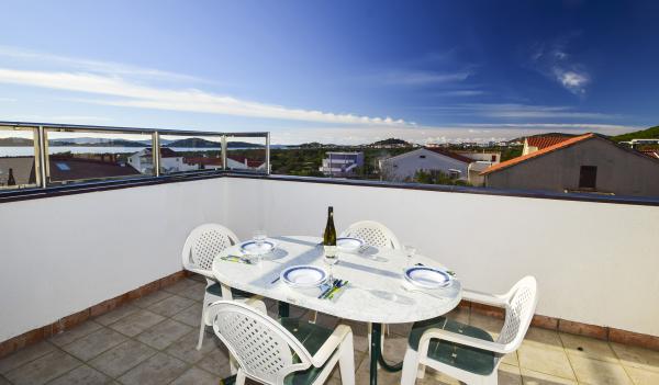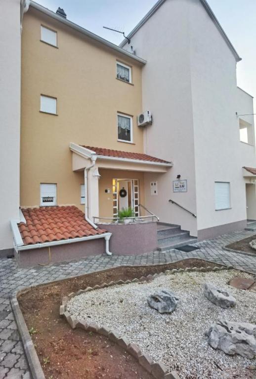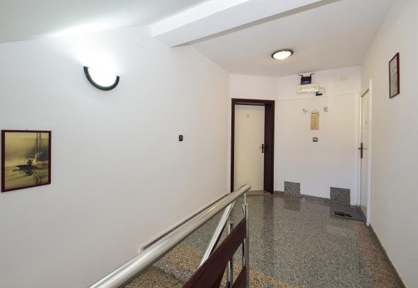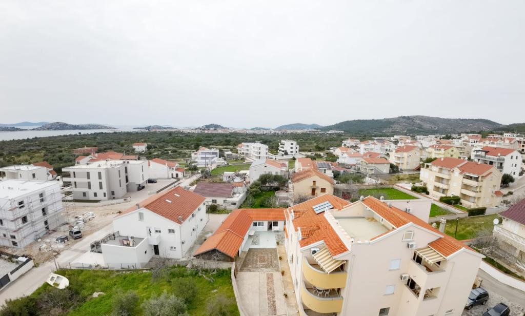 Villa Sanja is a modern building, located in one of the best locations in Vodice, 350 meters from the beach, with 7 apartments with a balcony or terrace. All seven apartments have a beautiful sea view. An extra bed can be placed in all apartments. The apartments are modernly furnished and extremely spacious. 5 Apartment for two people is 38 m² in size - it consists of a bedroom, living room with kitchen with sofa bed and balcony. 2 Apartment for 2 people 50 m² with living room, kitchen, bedroom, bathroom large balcony or terrace. One Apartment complete floor for 8 - 10 people: • four large double bedrooms, two of which with a third bed • four bathrooms with toilet, large kitchen, common room. • Parking on the property or in the house • about 15 minutes walk to the center of Vodice • about 5 minutes walk to the beach This family house is located about 350 meters from the beach. Parking in the facility or at home.