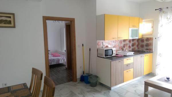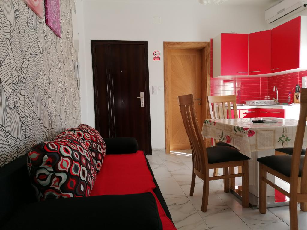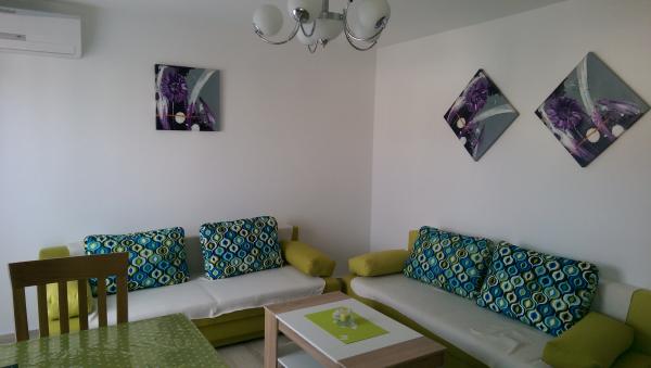 NEW!!!!! Completely and modernly furnished apartments 4 in the quiet part of Vodice, located near the beach. The house is a 2 minute walk to the beach. Each apartment has a personal safe. In the closed yard of the building there is parking for all cars. If you enjoy fish, meat, barbecue vegetables in the yard you can freely use it With one attractive. We're sorry for your arrival. .