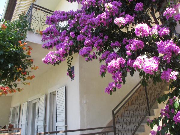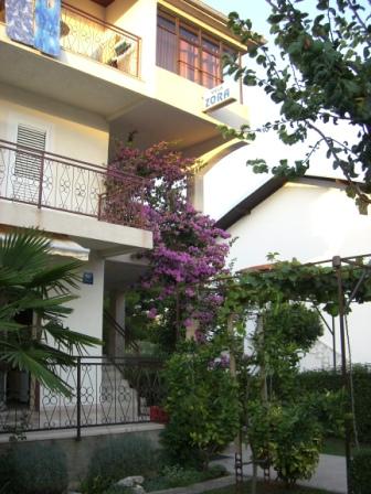 Beautiful Zora Villa is located in a quiet part of town with lots of greenery 800 m from the center 500 m from the sea - the beach. (5 minutes walk) In Vila Zori we offer apartments for 3, 4, 5, person Air condition, satellite TV, bathroom, kitchen Room for 2 persons, bathroom, air conditioning, refrigerator. You can use the shared kitchen and living room with the room.
