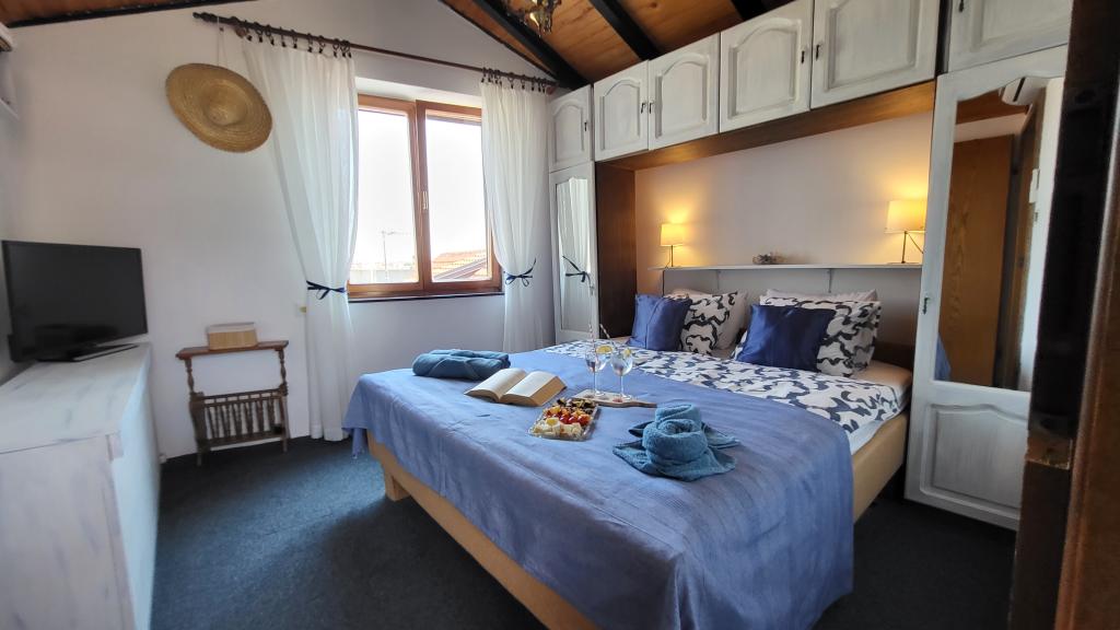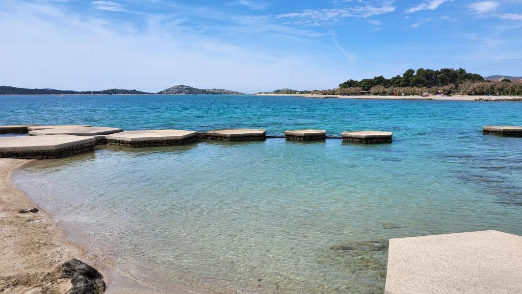 Guests of the Perlica holiday home have access to free Wi-Fi, air conditioning, TV, iron and ironing board, hairdryer, barbecue, parasol and sun loungers on the terrace. Towels, bed linen and parking for 1 vehicle are included in the price. Vodice is a tourist resort, known for its liveliness, diversity of tourist offer and friendly hosts. It is located on the coast, in a wide bay, 11km northwest of Šibenik, the center of Šibenik-Knin County. Vodice today has 10,000 inhabitants and is an ideal place for a vacation where everyone will find something for themselves. It offers beautiful beaches and a well-maintained promenade by the sea, which connects it to the nearby fishing village of Tribunj. In addition to various cultural and entertainment events, it also offers excursions to the nearby national parks of Krka and Kornati, and boat departures are from the port of Vodice, which is 280m away from the Perlica holiday home. Bicycle, electric scooter, kayak, boat, jet ski rental, free football field and children's playground are located within 300m.