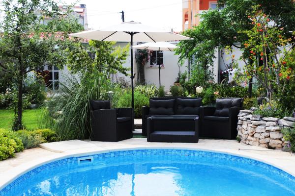 Rustically decorated small villa in the quiet part of Vodice, near the old core, and excludes the use of a car for which you have a secured parking lot. The villa is located in a spacious and lush garden with pool and children's park. All necessary facilities are within a 10-minute walk of the property.