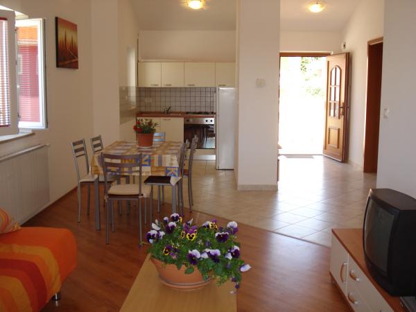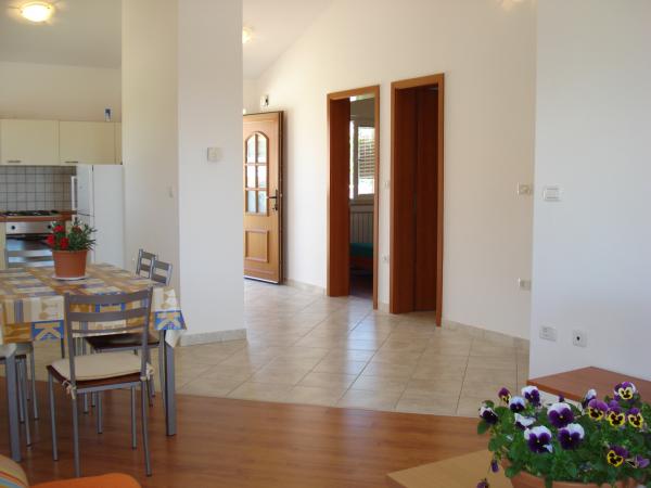 Spacious apartment in a quiet part of the city and peripheral Vodnjana on the ground floor of a newly built house with a beautiful view of the Brijuni Islands and Fažanski channel.Objekt located 2km from Fažane, 6 km from Pula and 20 km from Rovinj to the city center can be reached in 10 minutes walking.U Nearby there is a shopping center and a gas station.Apartman has 2 bedrooms, living room, kitchen, large bathroom and 2 terraces and parking