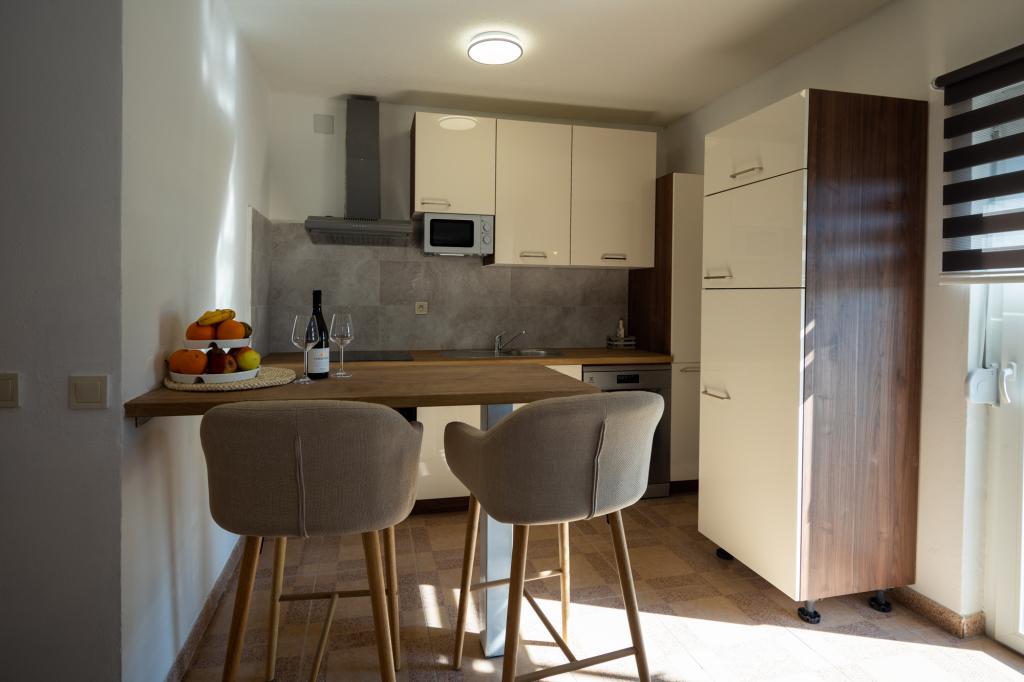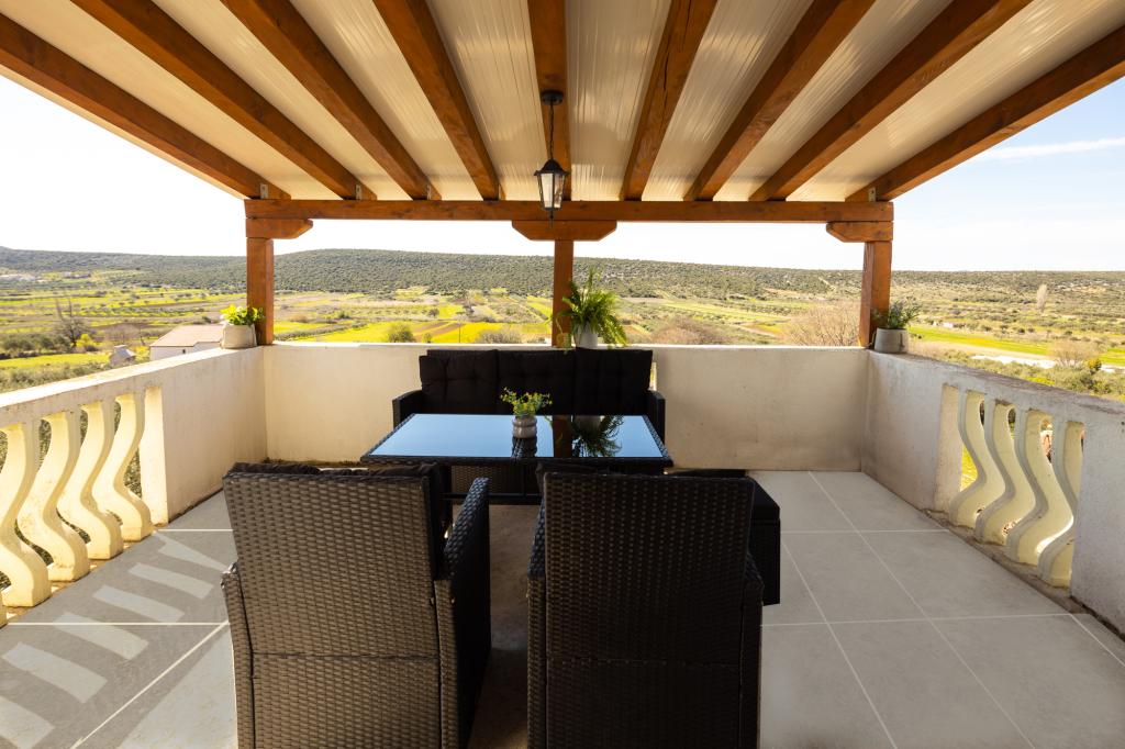 Apartment Mira is located in the very heart of Vrana. The wealth of this place is reflected in its history and the beautiful nature that surrounds it. In the immediate vicinity is the Nature Park Vransko jezero as the largest natural lake in Croatia, Maškovića Han, Gradina, Church of St. Nediljica, the Kamenjak lookout point, which offers a view of the Kornati National Park. Apartment Mira was completely renovated in 2024 and offers its guests 3 bedrooms, a kitchen with a dining room, a living room, a bathroom with a shower, a toilet, a meeting room, a storage room, a spacious terrace, and parking in the yard.